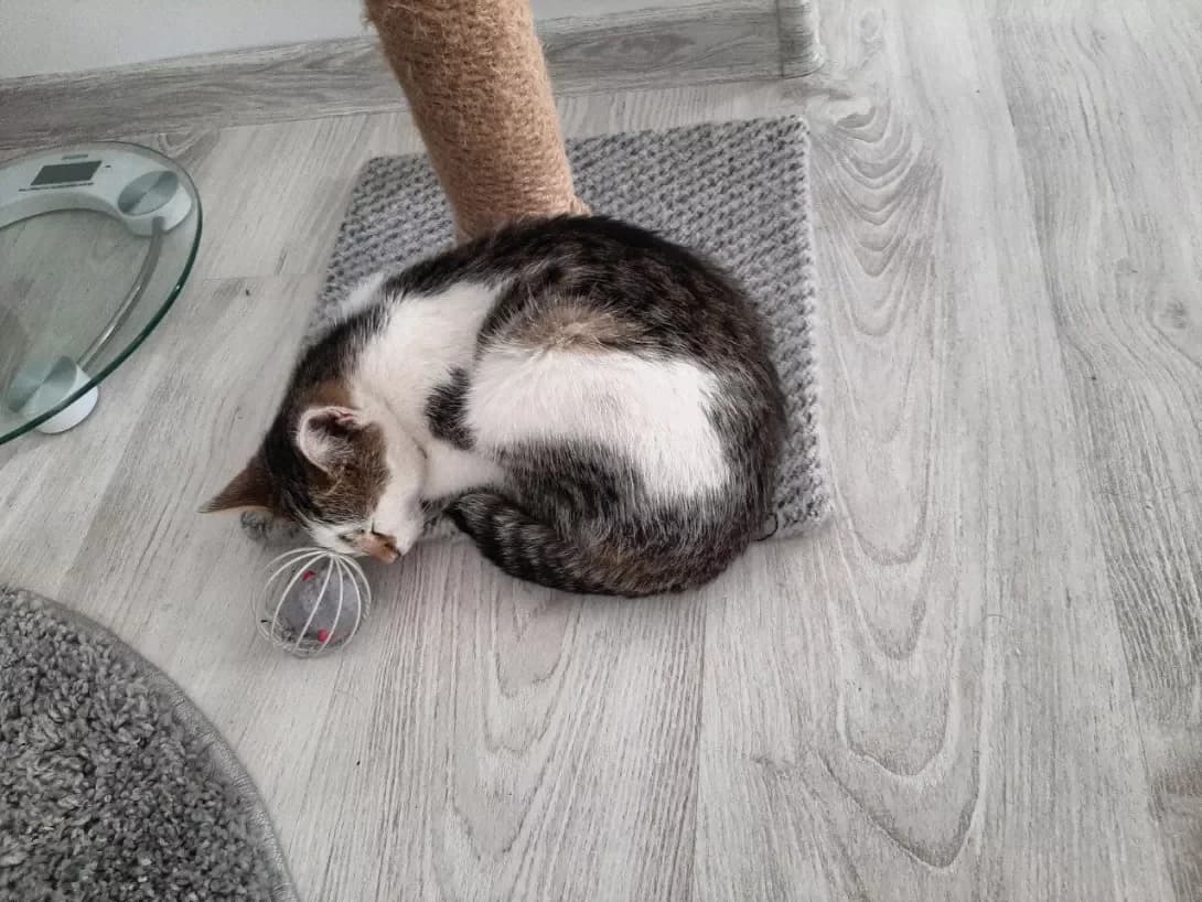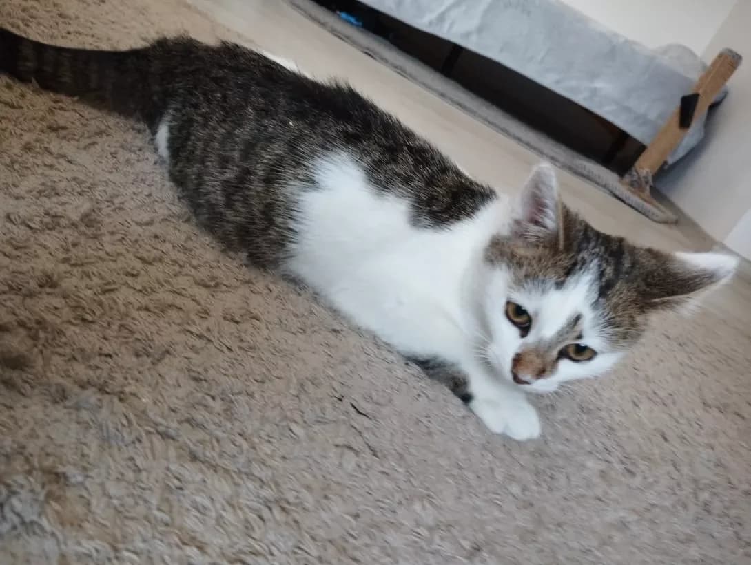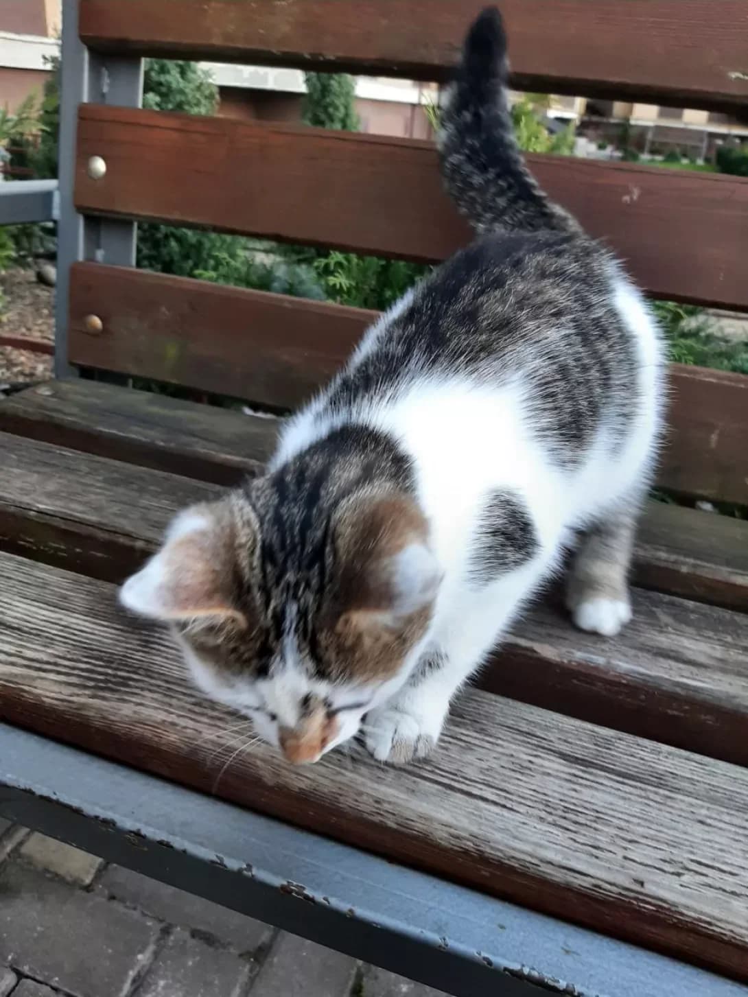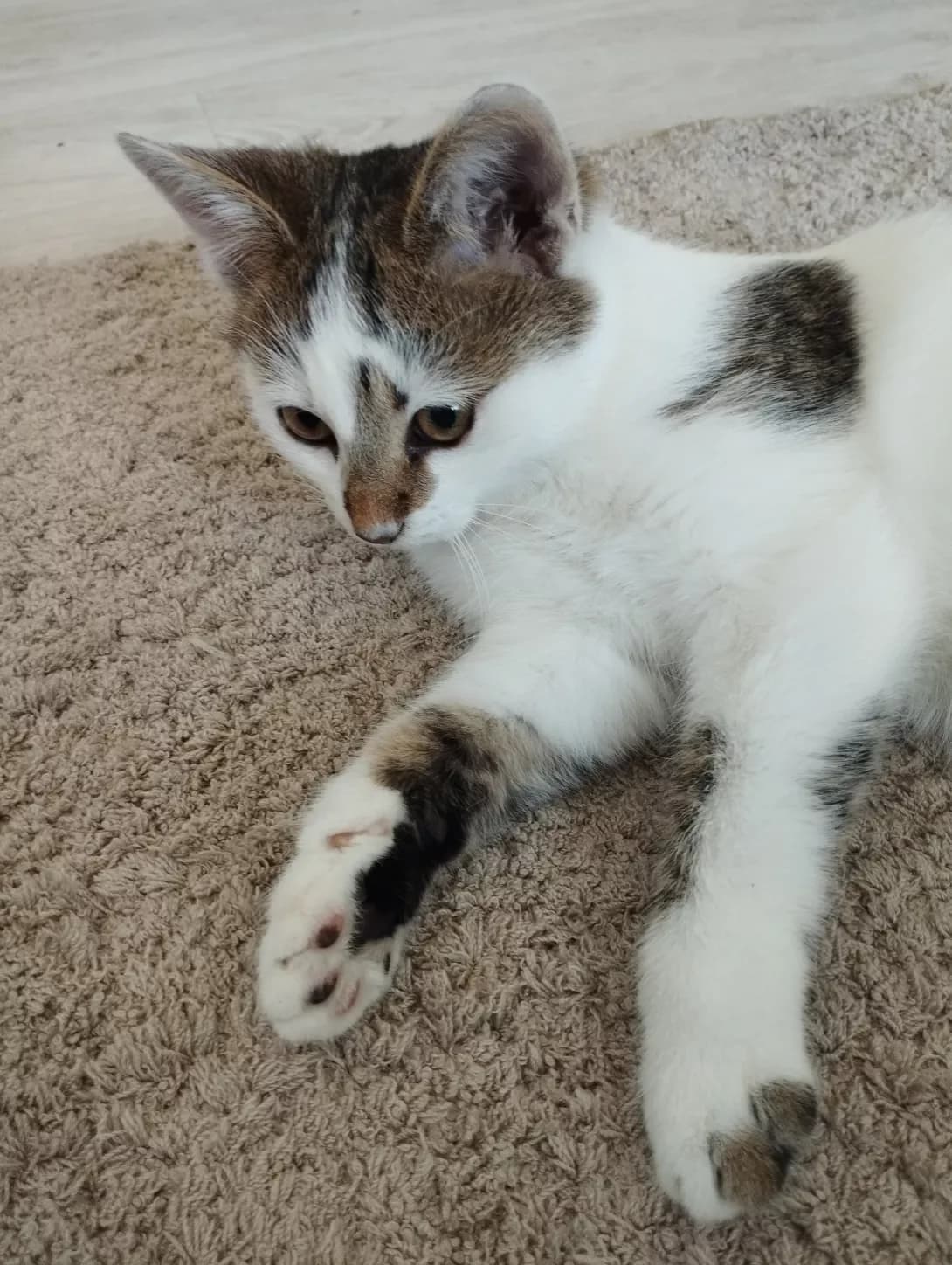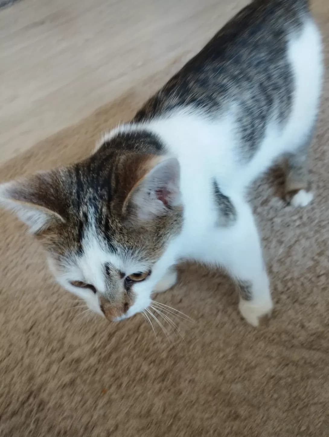 A good and gentle girl is looking for a family. Very gentle and sweet. Friendly with other animals. Eats everything and already goes to the tray herself. Treated for fleas and worms.
