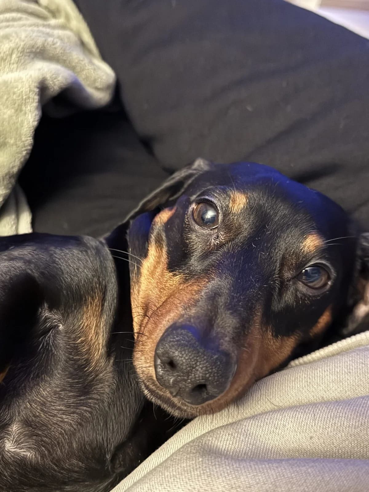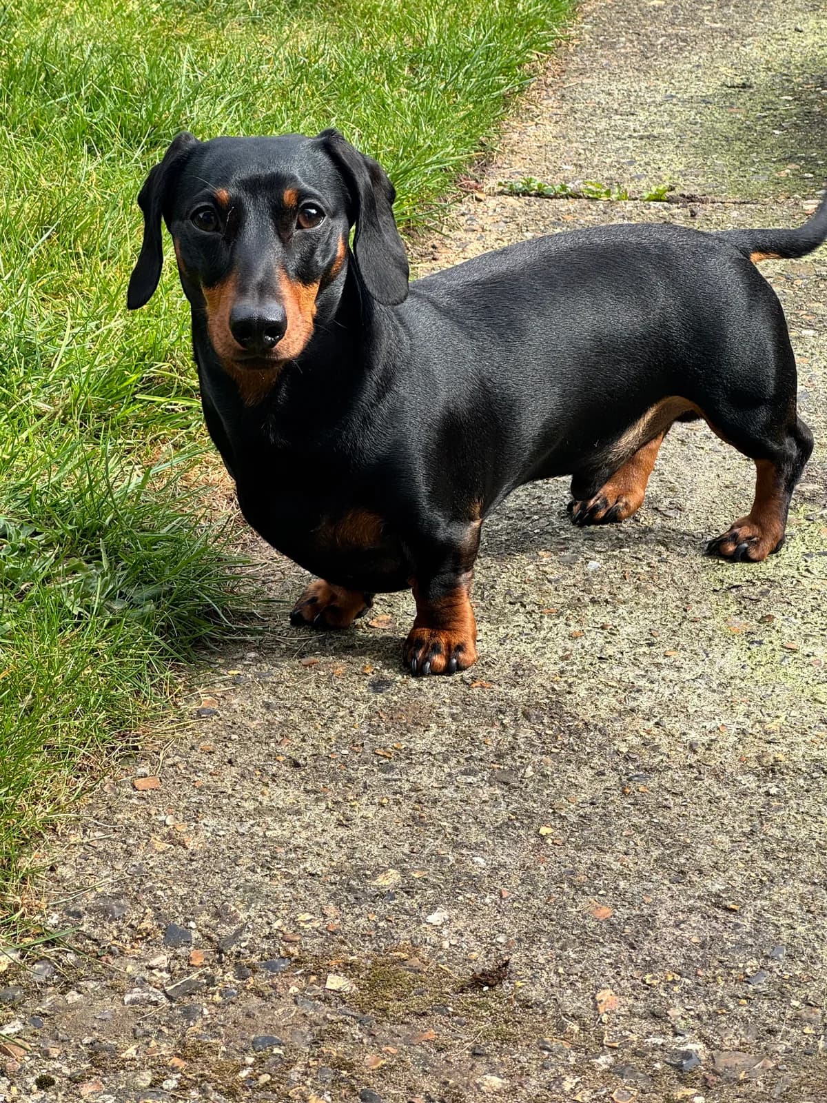 Alfie – Suffolk 3years Male, Black and Tan Smooth Coat Miniature (7kg) Not Neutered Alfie is a truly endearing boy who often finds the big, wide world a bit much to take in. He is a sensitive soul who leads with a nervous heart, but for those patient enough to earn his trust, the reward is boundless. He is happiest when he is curled up on the sofa for a long nap and a proper cuddle with his favourite humans. In true dachshund fashion, he isn’t afraid to share his opinions loudly and is always up for a spirited game of fetch to burn off some energy. Because Alfie finds meeting new people quite overstimulating, he needs a life where introductions are handled with care and patience. Alfie has bitten in the past, though this has specifically occurred when he felt the need to guard high-value items. His current family has managed this using “trade-up” techniques, and in a consistent environment, this is very workable. He isn’t being naughty; he’s just a little insecure about his treasures. Ultimately, Alfie is a kind, sweet-natured boy who simply finds life a bit intimidating. He will truly blossom in a quiet, predictable home where he can rely on a steady routine to build his confidence. He needs an owner who understands his quirks and is prepared to be his strongest advocate, stepping in to manage the world for him when things get a little too loud or fast. If you can provide a calm sanctuary and a steady hand, Alfie will repay you with a lifetime of loyalty and sofa snuggles. For more information about Alfie, please email Requirements in a home – Someone who is home most of the time, with a quiet predictable routine. Cannot live with other dogs Cannot live with cats Cannot live with children