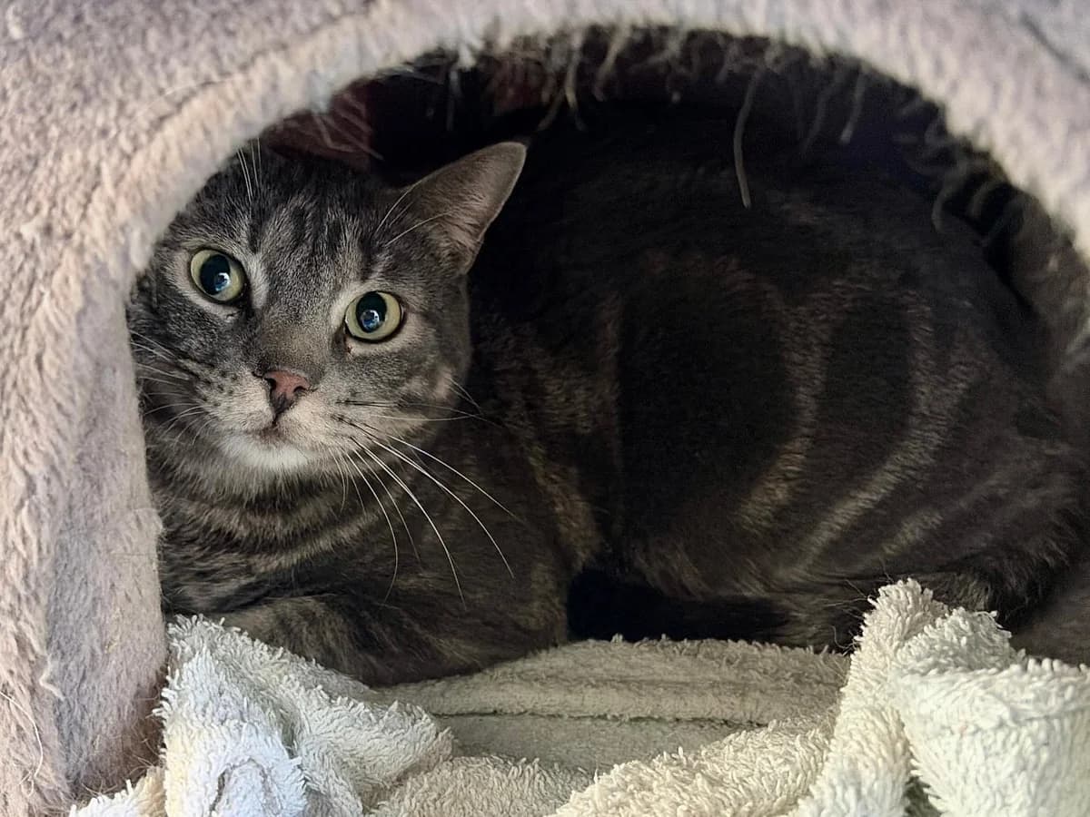 Alfonso is a beautiful grey tabby cat who was picked up by the health authorities without a microchip. He is currently at the shelter, where we have observed that he is a very fearful and sensitive cat. At the moment, he does not allow physical contact; when someone approaches him, he becomes stressed, climbs up the cat flap and then tries to hide under the hammock to feel safe. His behaviour is the result of fear and mistrust. Alfonso needs a family with experience with shy cats, who understand his process, respect his pace and are willing to offer him time, patience and a calm environment. With support and stability, he will be able to progress little by little. Adopting him means giving him the opportunity to experience what a home, respect and calm are like. 📩 If you would like to give Alfonso a chance, please contact us to start the adoption process. 📧 📷 Follow us on Instagram: