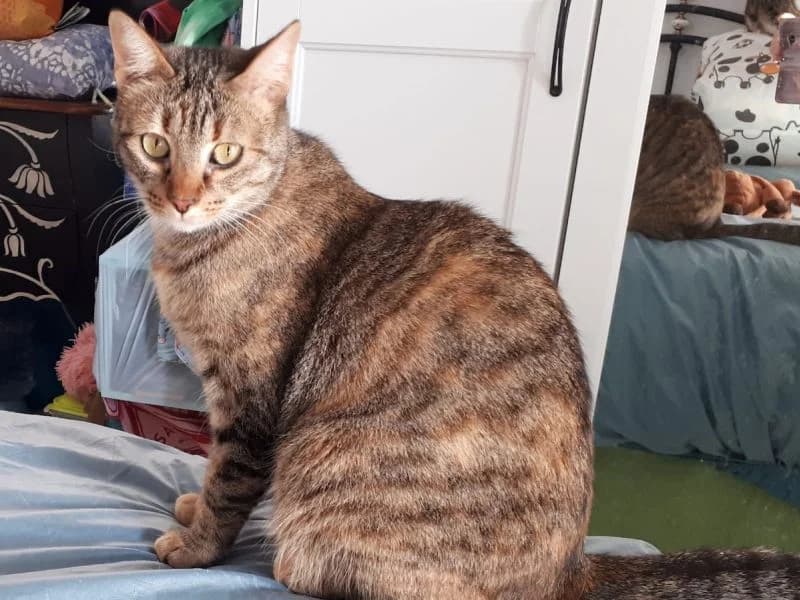 Amara wurde ca. im September 2024 geboren. Die rötlich beige getigerte Amara wurde mit ihrer Mutter und ihren Geschwistern auf der Strasse gefunden und beide durften zu einer tierliebenden Frau ziehen. Nun haben sich die Lebensumstände der Tierschützerin geändert und sie konnte Amara nicht mehr behalten. So fand Amara nun Unterschlupf in der Auffangstation. Die Spanierin Amara ist eine freundliche und ruhige Katzendame. Sie ist verspielt, liebt Streicheleinheiten und ist dem Menschen zugetan. Nun wünscht sich Amara ein Zuhause zu einem Gspändli mit FREIGANG (weit weg von stark befahrenen Strassen) oder einen grossen vernetzten Balkon/Terrasse. Vielleicht hat Amara Glück und darf zusammen mit ihrer Schwester Ariel in ihr Zuhause im Glück ziehen. Amara ist kastriert, getestet, gechippt und geimpft und wird mit dem Tierschutzbrief vermittelt.