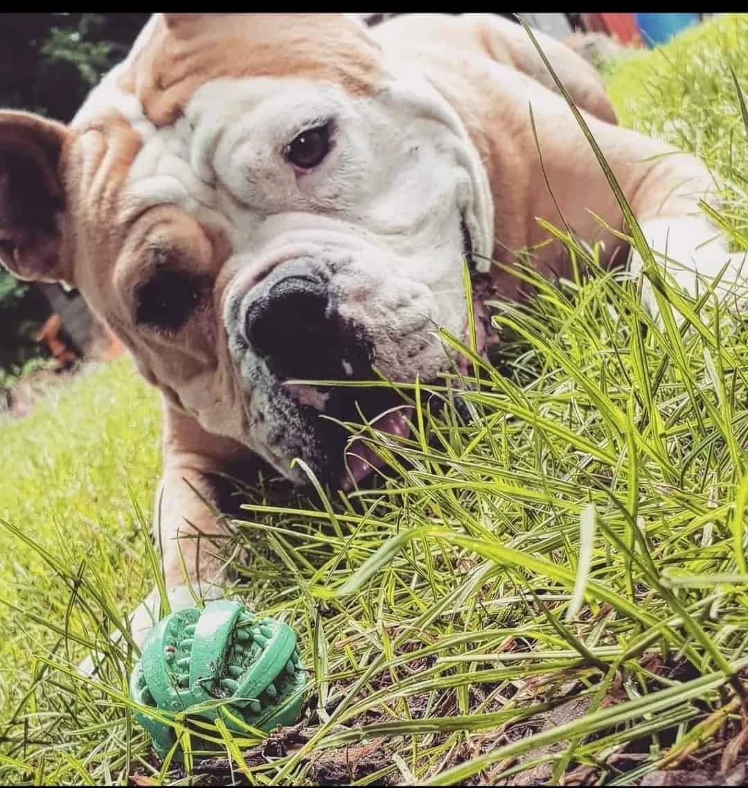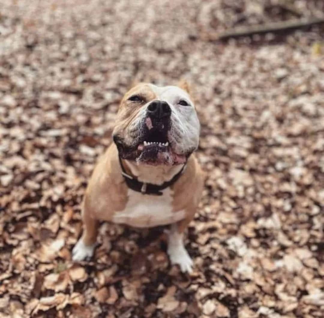 Amaro, Bulldoggen-Mix, geboren 2015 Mit Amaro gibt es immer was zu Lachen, er ist einfach ein lustiger Geselle. Schon beim Rausholen aus dem Zwinger bekommt man ein wunderschönes Bulldoggen-Grinsen geschenkt und der ganze Kerl wackelt vor Freude. Amaro nimmt unterwegs immer wieder Kontakt zu seinen Menschen auf (ok, eigentlich fragt er nur ob vielleicht ein Leckerli zu haben ist…) und immer wieder plumpst er auf den Rücken und möchte kurz den Bauch gekrault bekommen – die Zeit muss sein!!! Mit anderen Hunden geht Amaro gerne spazieren, aber er möchte nicht bedrängt werden. Er braucht auch keine langen Wandertouren, ein netter gemütlicher Spaziergang um den Block reicht völlig aus. Jetzt kommt das ABER: In seinem neuen Zuhause braucht er klare Regeln, sonst gehören Couch und Bett ganz schnell ihm alleine! Das hat eine gescheiterte