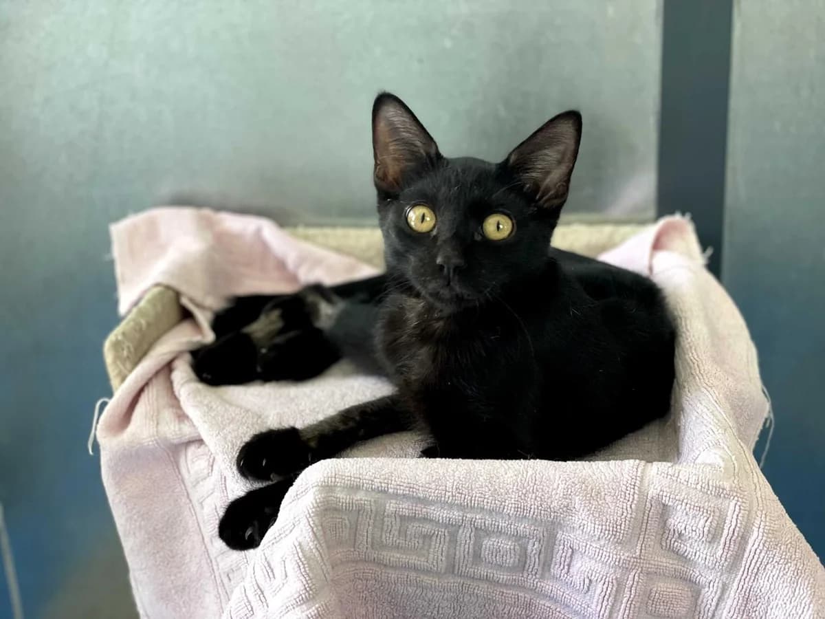 Angelo arrived at Triple A with his siblings and won everyone over with his sweetness. Initially mistaken for female, he's a beautiful black cat. He contracted parvovirus after arrival but fully recovered thanks to donations covering his veterinary treatment. Now stronger than ever, Angelo is affectionate, friendly, and very sociable with both people and other cats. After his difficult start, he deserves a forever home where he can be happy.