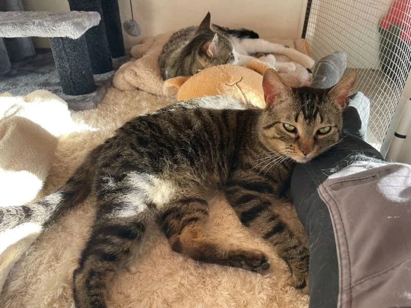 Armani wurde ca. im Januar 2022 geboren. Der hübsche getigerte Armani und sein Bruder Valentino wurde bei einer Animal Hoarderin beschlagnahmt und in die Perrera gebracht. Tierschützer haben sie herausgekauft und in die Auffangstation gebracht. Der Spanier Armani hat ein grosses Grundvertrauen, ist verschmust und dem Menschen sehr zugetan. Nun wünscht sich Armani ein Zuhause zu einem Gspändli entweder mit Freigang (weg von stark befahrenen Strassen) oder in einer grossen Wohnung mit gesichertem Balkon/Terrasse. Vielleicht hat Armani Glück und darf zusammen mit seinem Bruder Valentino oder einem anderen Gspändli in sein Zuhause im Glück ziehen. Armani ist kastriert, getestet, gechippt und geimpft und wird mit dem Tierschutzbrief vermittelt.