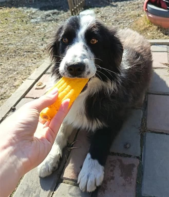Baby, sterilised female dog, crossing Border Collie, 11 months, high ca. 43 cm, abroad. Background. Baby was left in an open field a few months ago, as a puppy, without shelter or an opportunity to find something to eat. At a construction site a few people were working and Baby followed them to the nearest village. There she found some shelter at a school. She got some food there and she loved to be in touch with the kids around the school. Then it became Christmas vacation and the school closed and Baby remained alone. On a cold winter day, our contact found her and gave her something to eat. Baby decided to follow her to her house and since then the dog stays in her care. Character. Baby is a very intelligent dog; She adapts easily and has a good memory. She's very social to people and other dogs and she loves children. Especially for a stray dog, she has real faith in people. Baby's still a puppy, cheerful and full of energy. She loves to run and play and really needs this to lose her energy. Everything she finds is for her toys and she's having fun with them. Who gives sweet Baby a golden basket?