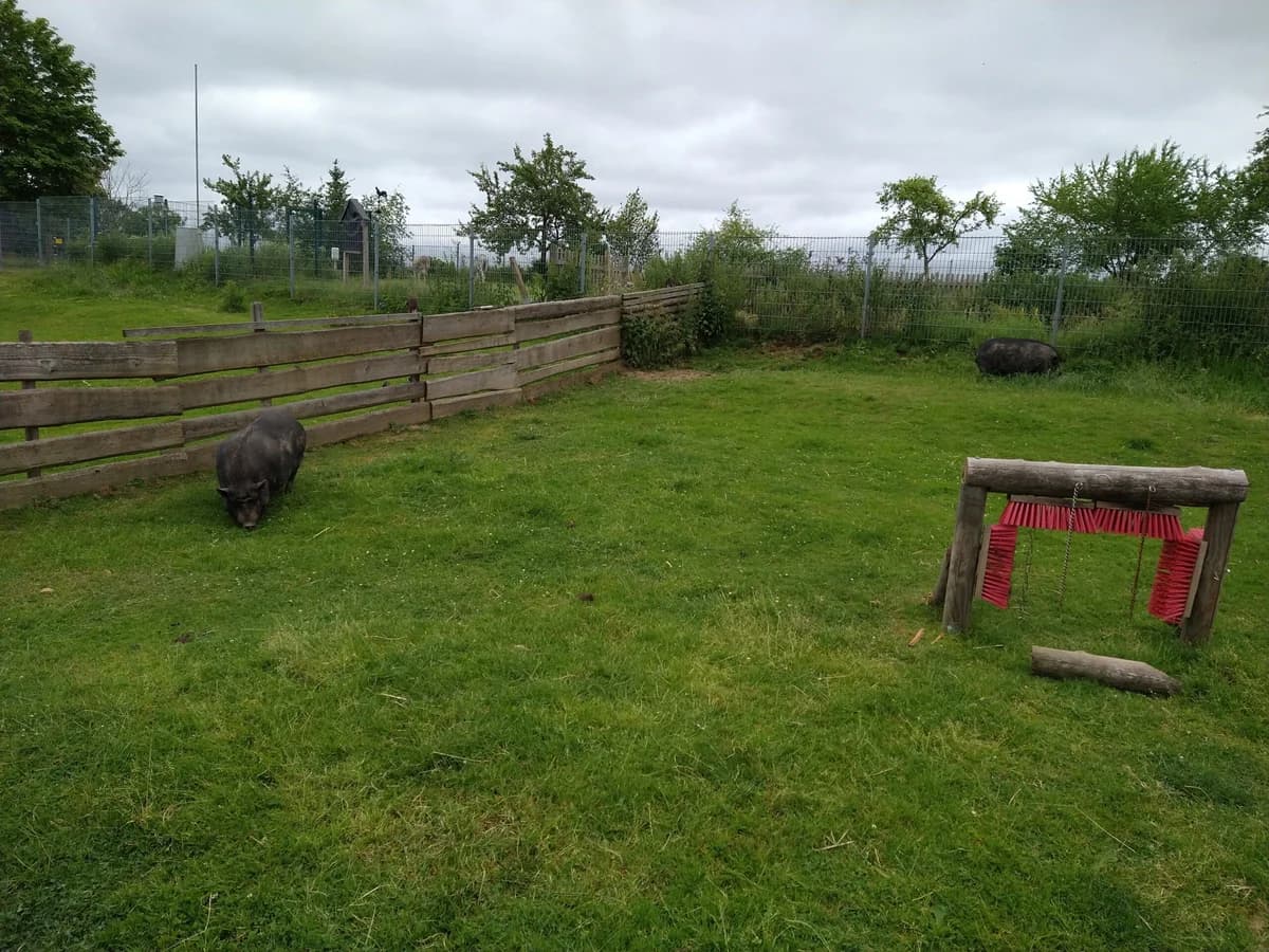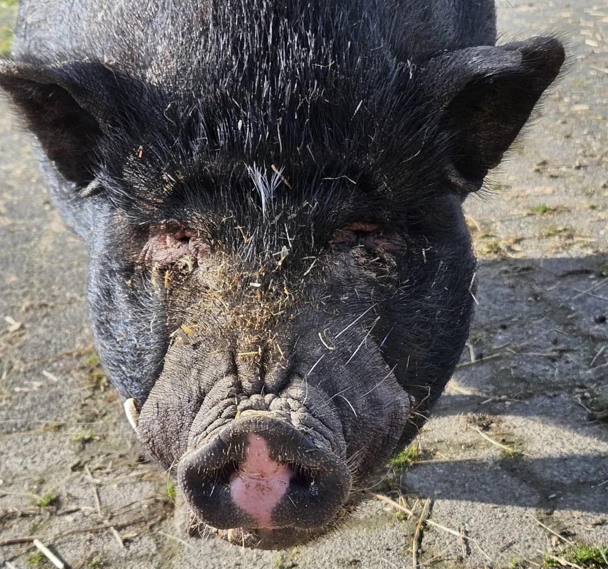Hallo, ich bin Bacon... ein Hängebauchschwein! Zusammen mit meinem Bruder Horst wurde ich im Tierheim abgegeben, da wir zu groß wurden und unser ehemaliges Zuhause nicht mehr artgerecht war. Jetzt genießen wir unser neues Zuhause und entdecken jeden Tag neue Tiere, welche hier mit uns leben :)