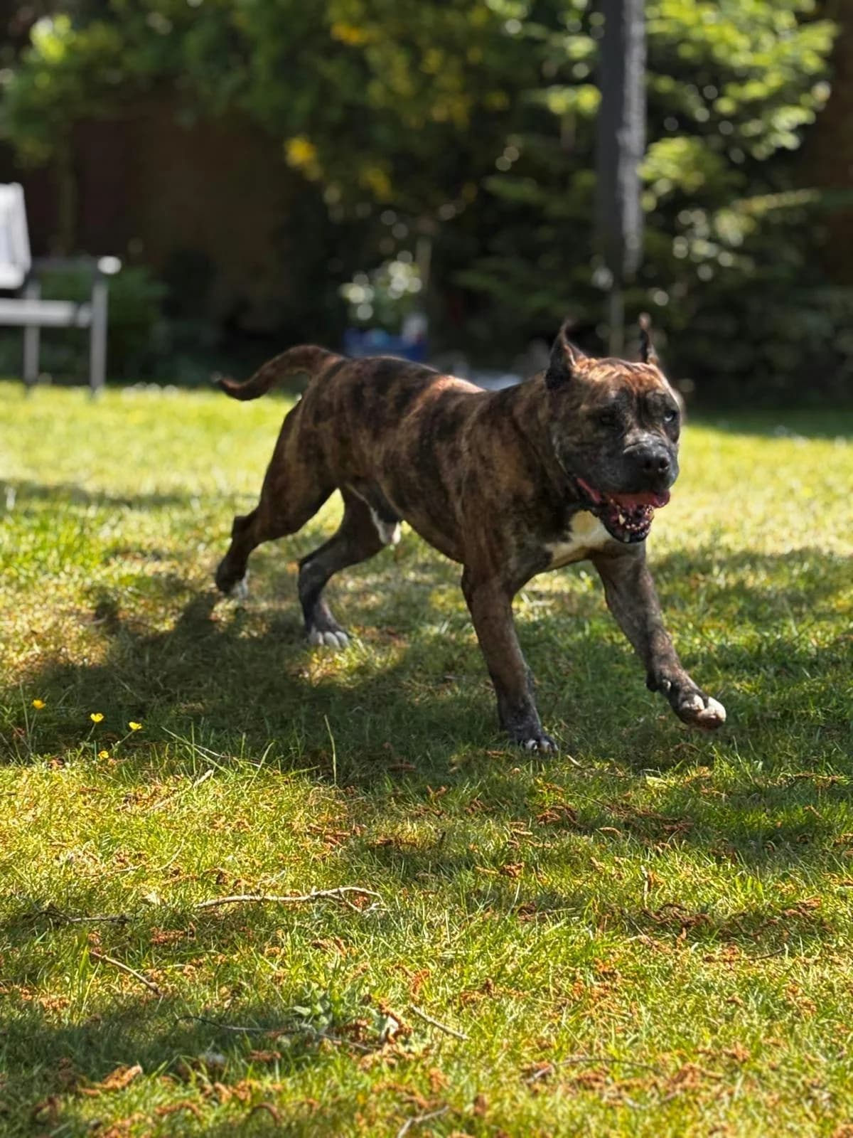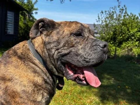Stocky, calm companion with a distinctive pushed-in face.