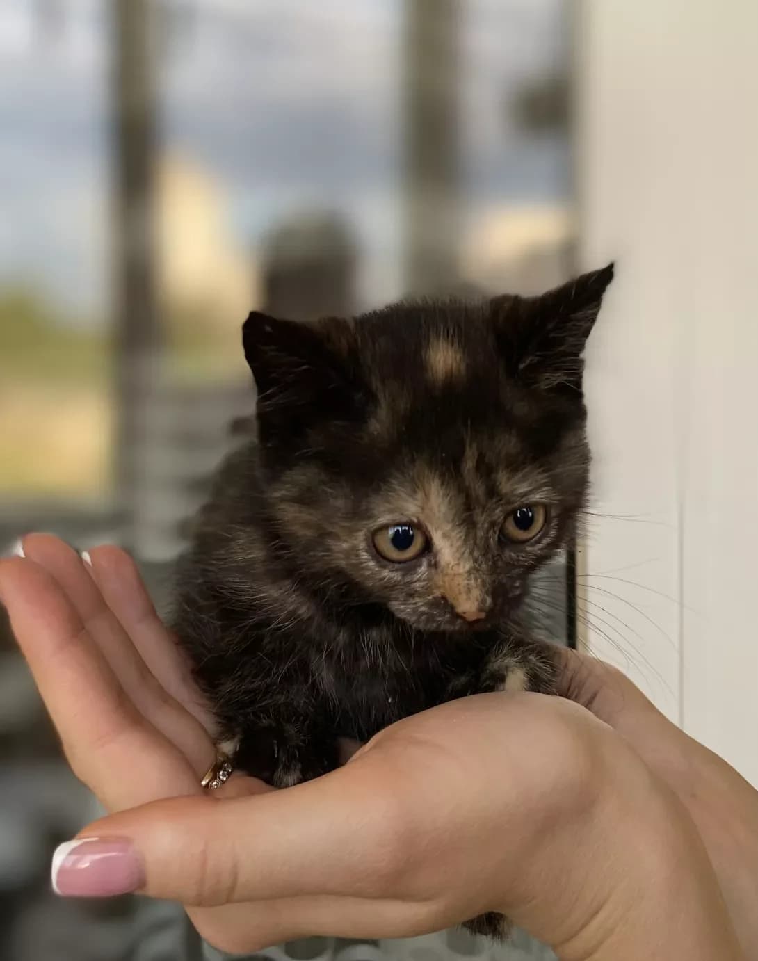 Маленькая кошечка ищет дом. Возраст 1,5 месяца, ходит в лоток, кушает все. Подбросили под дверь, дома уже есть животные, которые обижают крошку.