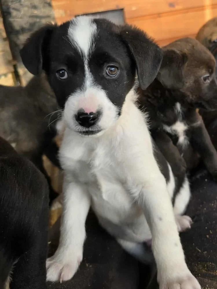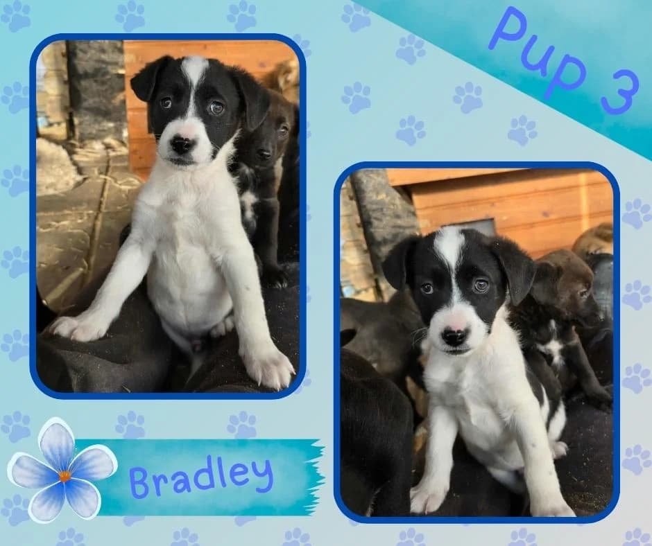 * for an explanation, read Why we are careful to place our dogs in families with young children please. Information: In January and again in March 2026, some of our team members visited Elisa's asylum in Romania for another week, with which we worked closely together. We spend time socializing and getting to know the pups and adult dogs as well as possible. Only the dogs we expect will be happy in the Netherlands - and their adopters with the dog - will be mediated by us. Pup Bradley is definitely one of them! This guy comes from a litter of 5 puppies. Besides Bradley, there are Zorro, Buddy, Bibi and Dolly. In January these pups were still very open, free and human-oriented, as it should be. Bibi and Zorro were slightly more cocks the fronts, where Buddy, Bradley and Dolly behaved a bit more patiently - but certainly not really afraid. In March Bradley became more waiting/unsure. Puppies also go through fear phases, it may be that that plays a role. But the lack of contact with people is certainly also involved. In the shelter where about 300 dogs stay, with very little human force, there is simply no time to give the dogs regular attention. Such a shame when puppies staying longer in the asylum become more uncertain...