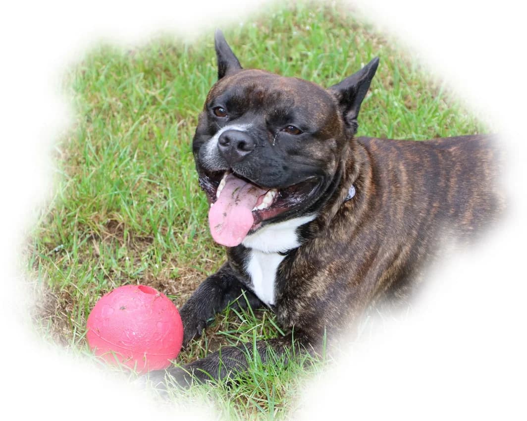 Buddy ist ein Mischling aus Stafford und Bullterrier. Da seine Besitzer keine Erlaubnis zur Haltung von gefährlichen Hunden hatten, musste er leider ins Tierheim. Hier im Tierheim zeigte Buddy von Anfang an ein stereotypisches Verhalten. Bei Stress fängt er sich an in seine Rute zu „beißen“. Um etwas stress zu vermeiden sitzt er bei uns in einem Ruhigen Bereich und ist für Besucher nicht zu sehen. Buddy sucht sich seinen Menschen aus und zeigt auch körpersprachlich deutlich wen er mag und wen nicht. Zu Menschen die er mag ist er freundlich und verschmust. Draußen muss der Rüde noch viel lernen, er mag fremde Hunde überhaupt nicht und lässt sich nur schwer ablenken, um an dem anderen Hund vorbei zu gehen. Was Buddy überhaupt nicht mag ist, Regen, starker Wind oder Regen. Dann wir aus dem relativ gemütlichen Buddy eine Rennsemmel der in seinen Zwinger zurück möchte. Buddy sucht sehr erfahrenden ruhige Menschen ohne Kinder und andere Tiere.