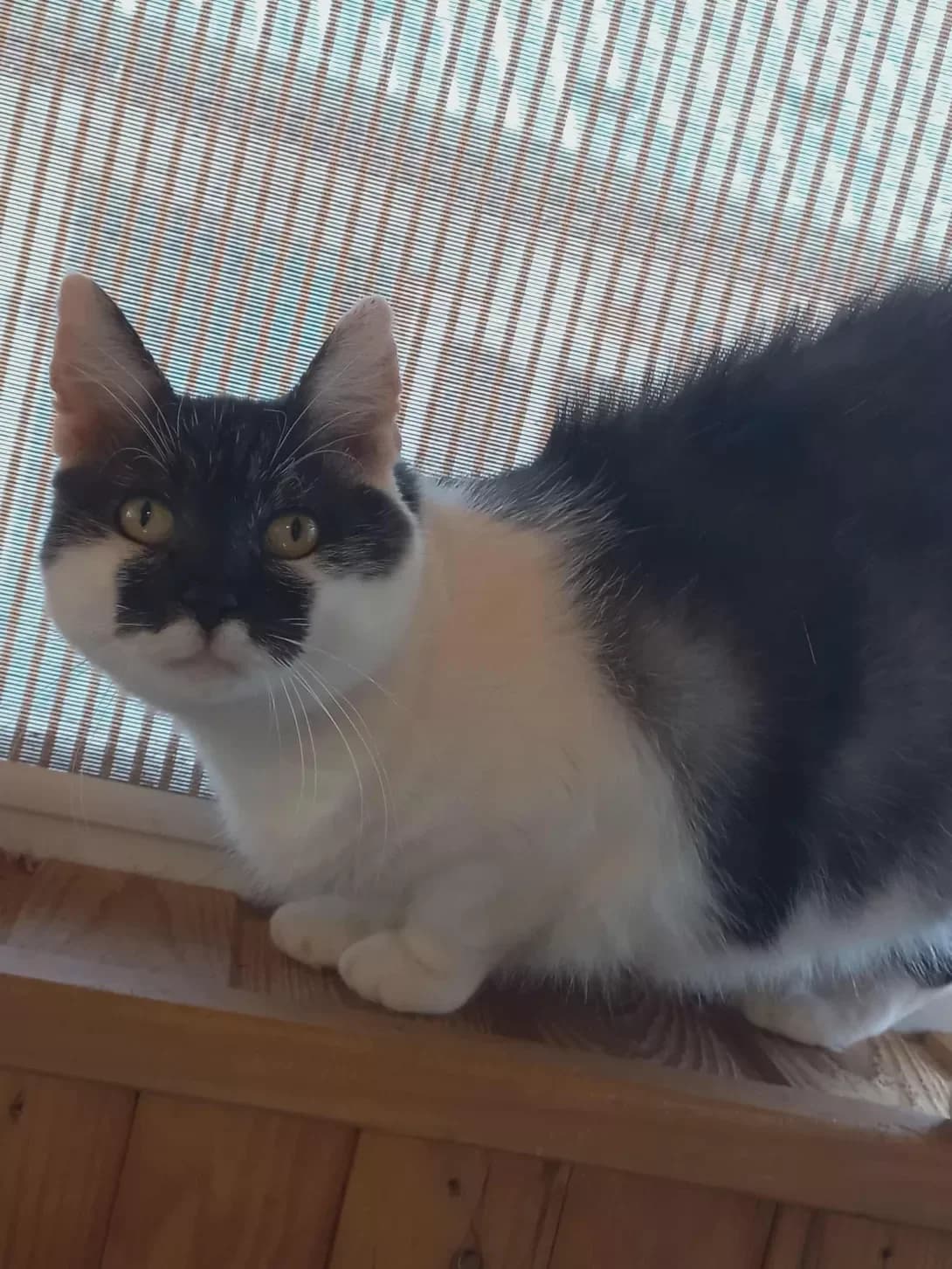 A fat cat that the residents of the house where she lived wanted to kill because she was bothering them. Age about 5-6 years. Very calm cat. Likes dry food and sleeping)