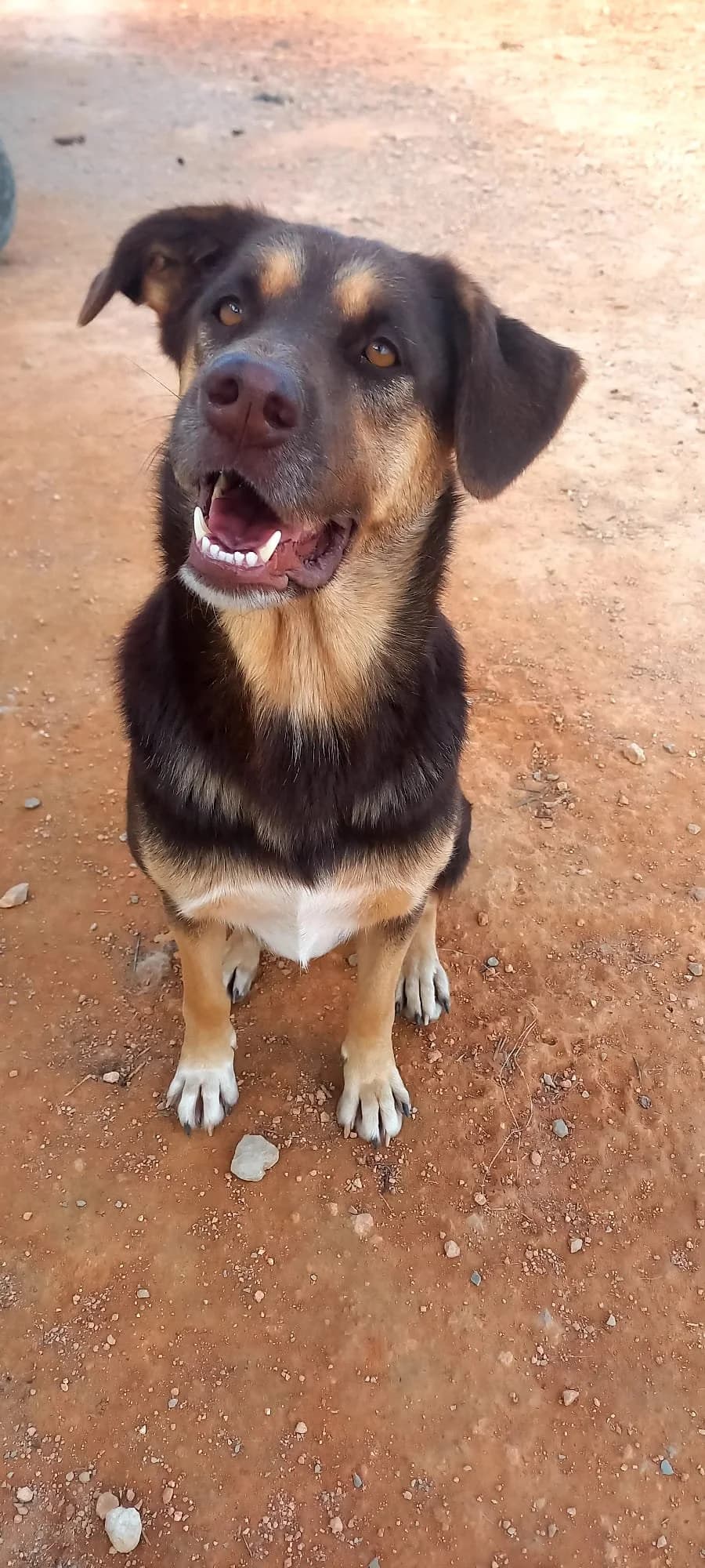 Personality & BehaviorCacau’s past was tough, she spent her early life chained, never knowing the warmth of a real home. But despite this, she has remained sweet, loving, and full of affection. She adores human attention and is always seeking cuddles, making her an incredibly loyal and devoted companion.Cacau is intelligent and obedient, she already knows commands like “Sit,” “Paw,” and “Down” and is eager to learn more! Though she is a strong dog, she walks quite well on the lead. She will thrive with an owner who continues her training and builds her confidence.When it comes to other dogs, she can be insecure rather than self-confident, which makes her less patient if a dog growls at her. She can also be food-aggressive, so she should be fed separately. Adoption RequirementsHome type : A secure garden where she can safely play and relax. A structured home where she is fed separately to avoid any food-related issues.Experience level : An owner who enjoys training, she is eager to please and would love to keep learning!Other pets/kids : A loving family or individual who will give her plenty of attention and affection. A home where she is either the only dog or with calm, non-confrontational dogs.Learn more about adoption. Tiny ShelterAlbufeira, SponsorIn-Kind DonationsTeaming Group How to helpDonateFosterVolunteer GeneralAbout UsContactNews © 2026 Tiny Shelter | credits