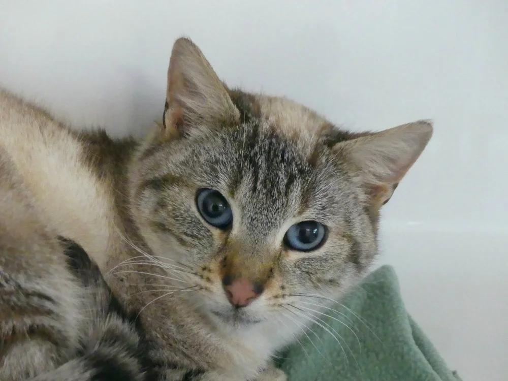 Cosmos a été prise en charge suite au décès de sa propriétaire. C'est une chatte très gentille qui accepte volontiers les caresses !