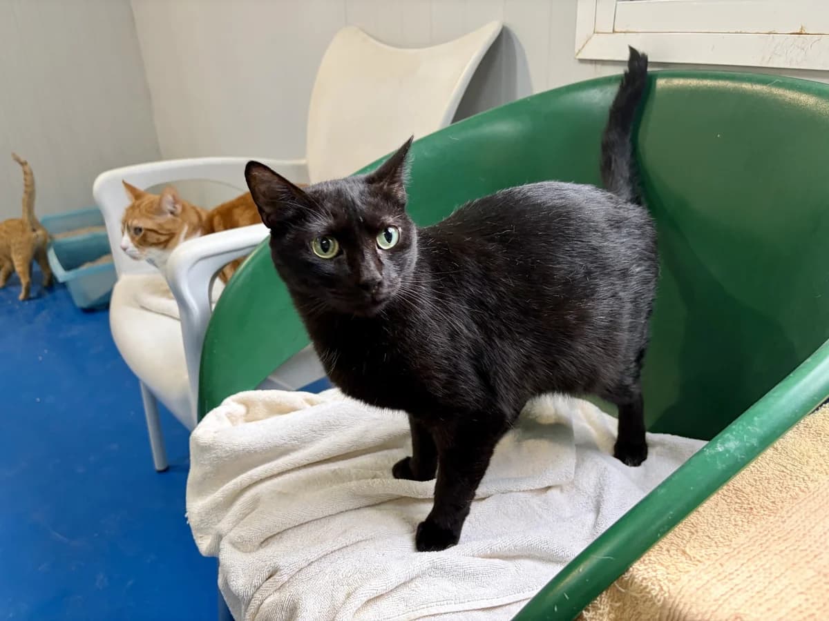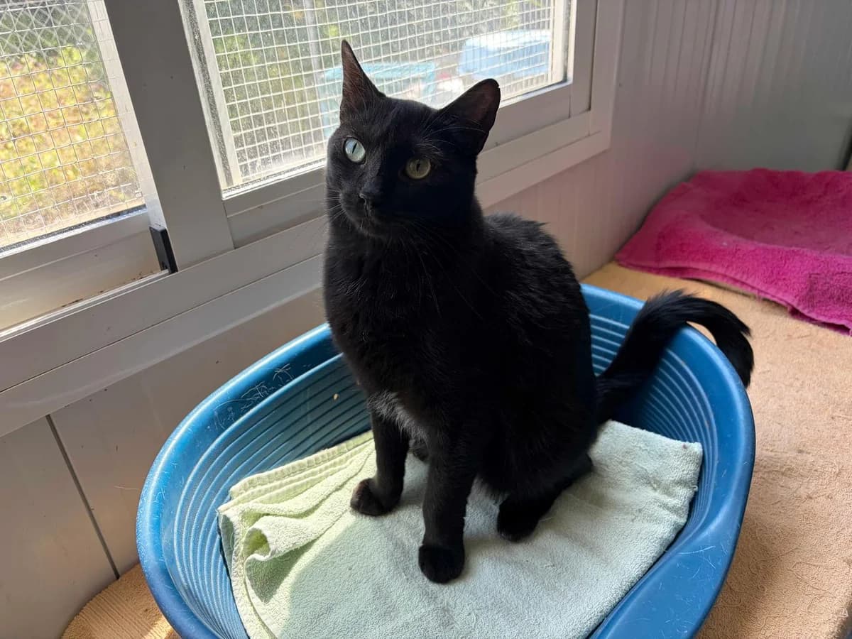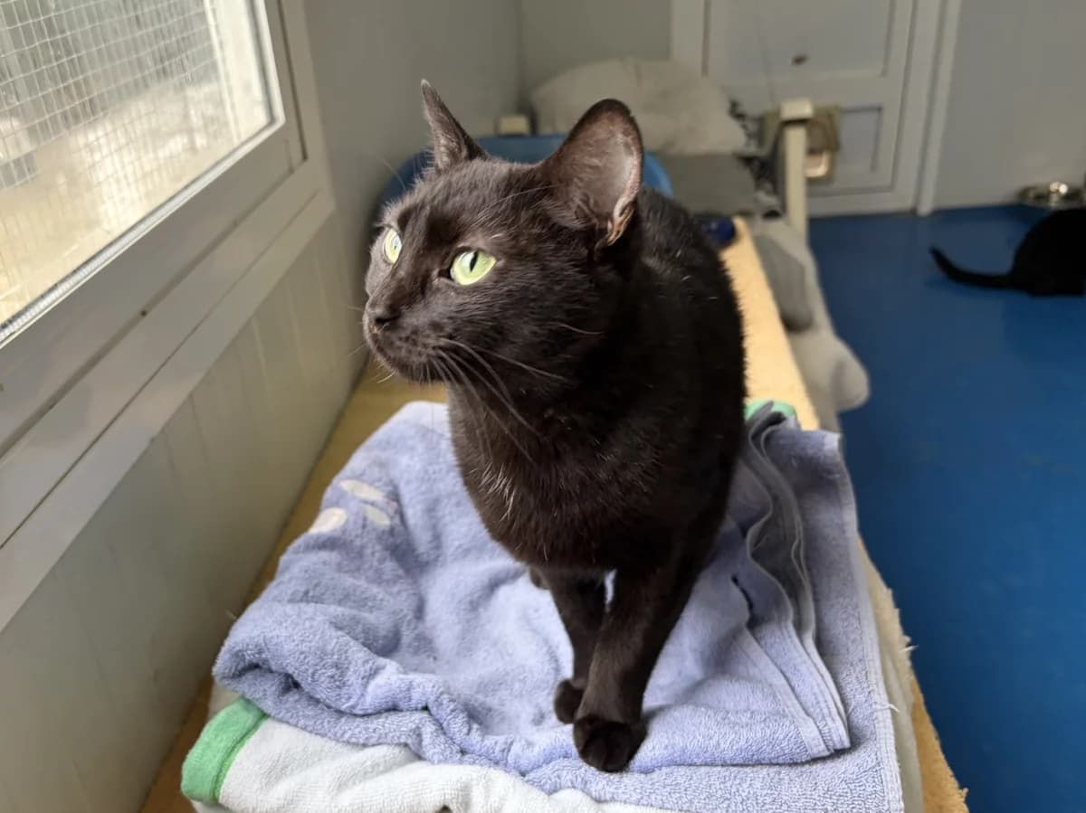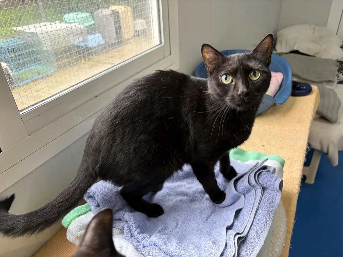 Dana is a beautiful black cat who came to us with her four newborn kittens. Unfortunately, they fell ill and only two of them, Kyrie and Atlas, managed to pull through. Dana has proven to be an incredible mother, caring for her little ones with admirable dedication and tenderness. She is a very affectionate cat who loves to be petted and enjoys the company of people. At the moment, she does not get along well with other cats, although she has only been in her new room for a short time and is still in the process of adapting. After everything she has been through, Dana finally deserves a home full of love and tranquillity, where she will be cared for as much as she has cared for her kittens.