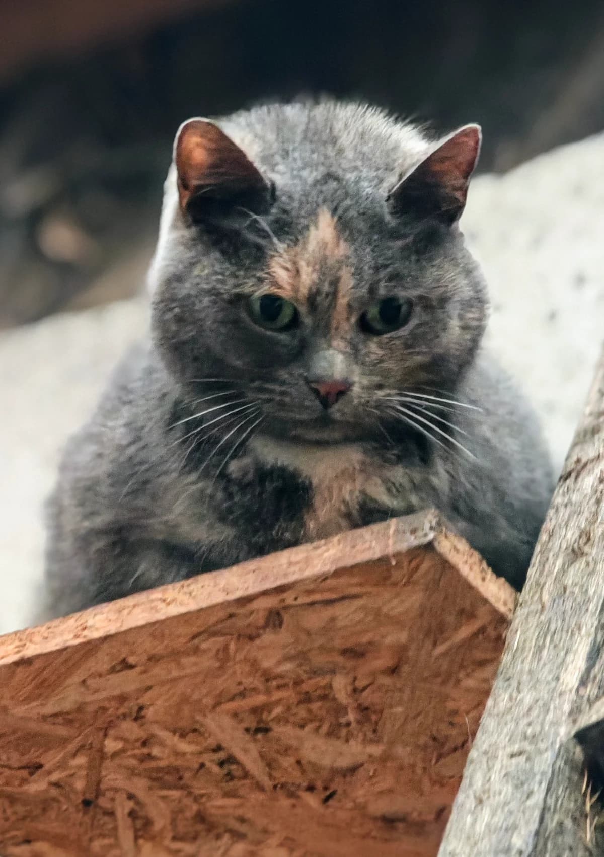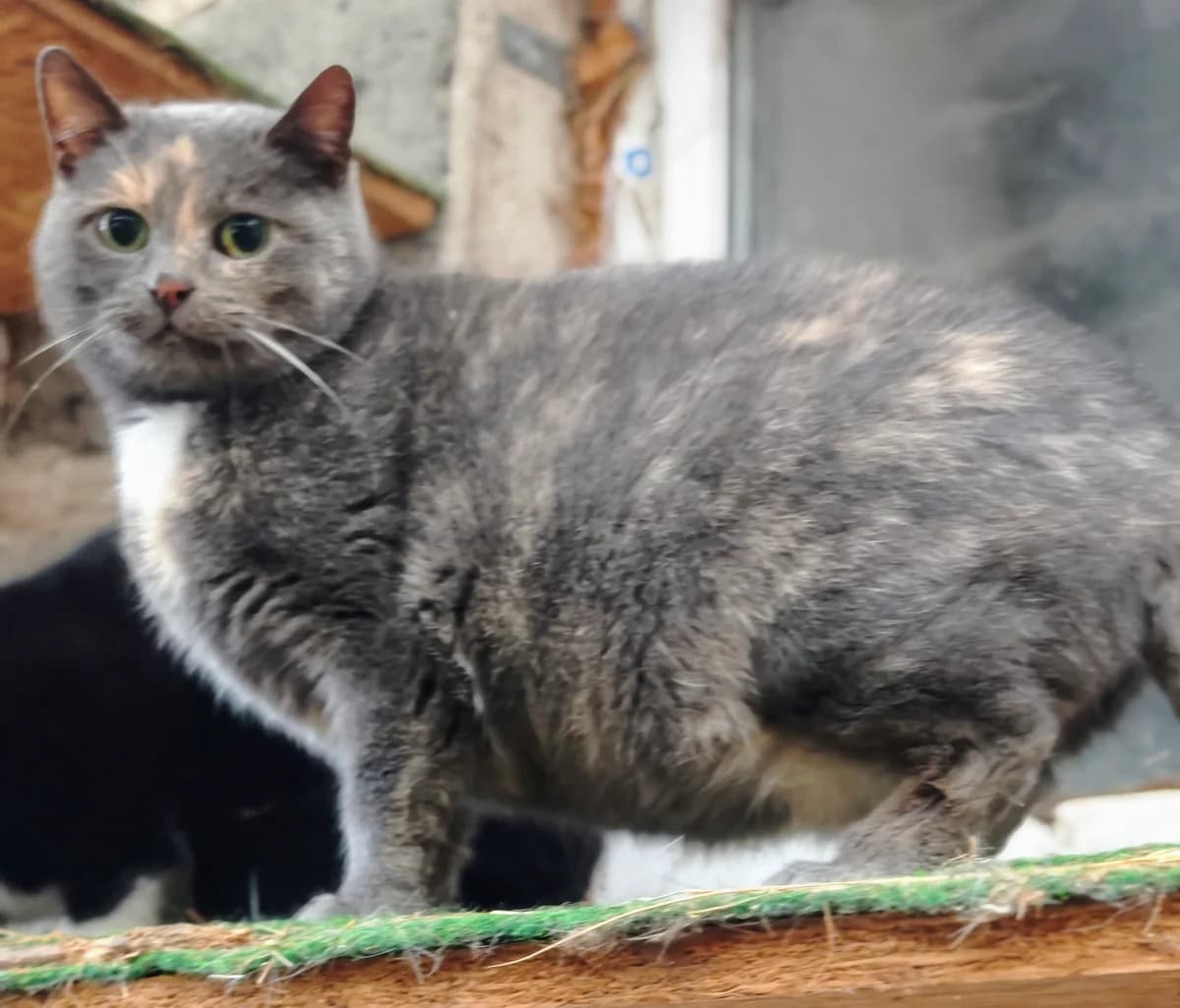 Dorosła, około dwuletnia, powalającej urody, szylkretowa kotka. Wymaga pracy, dużego „kociego” doświadczenia, doswojenia. Dom z innym kotem, gdzie mogłaby obserwować relacje kocio – ludzkie mile widziany. Wysterylizowana, testy ujemne.