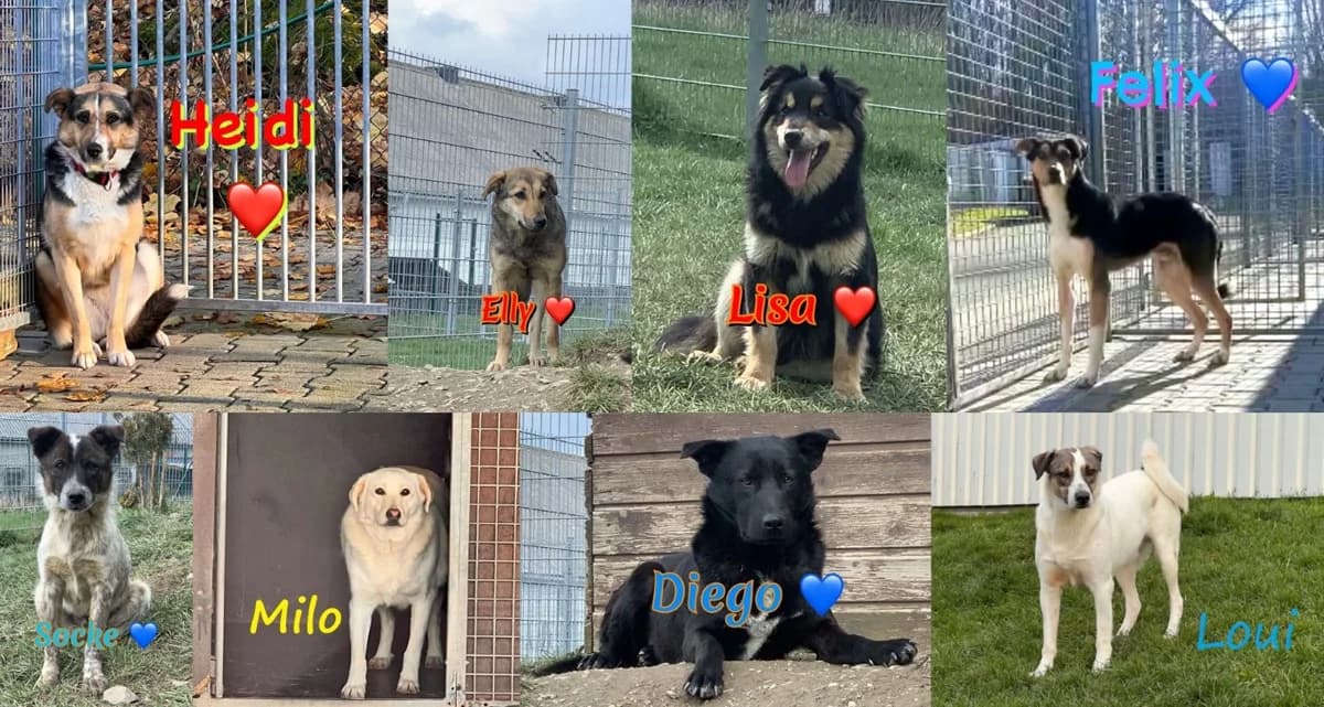The dogs from Cornetu Diego, Socke, Mr Lisa, Felix, Elly, Heidi & Milo are looking for people with a lot of patience & time. The animals would also be very happy about sponsorships! Our pack in May 2024 on the dog meadow >>> Video The dogs from Cornetu – Escape Hell – Ready for a life in security. And full of love. In the spring of 2021, more than 90 dogs from the Shelter des Grauens in Cornetu, Romania were rescued with the support of the Verein Strassenhunde Romania in Not e.V. Many animals in a miserable state. For many animals, any help came too late. But some of these wonderful souls were allowed to find shelter in our shelter. The dogs are traumatized, with respect to us human beings. Who can blame them. The animals are very social. In the >>>> Video you will see our small group as they feel comfortable and even are relaxed in the sun. You can also see how they show interest in us. Some even take quite cautiously from our hands. This is very important to us and leads us to tears. Felix, was born in Romania as a street dog. Always afraid in your eyes. Find more about Felix here >>> Felix Loui has found a home! We thank Louis Paten, who were there for him during his stay at the shelter. Find more about Loui here on our homepage: >>> Click and follow >> Loui Socke has found a home!!! We thank Socke's godfathers who were there for him during his stay at the shelter. And also from our sock has become a wonderful dog who is looking for a family. Find more about Socke here >>> Socke Heidi has found a home!!! We thank Heidi's godfathers who were there for them during their stay at the shelter. Our Heidi becomes more suspicious and comes out of its rearmost corner when our animal caregivers call.