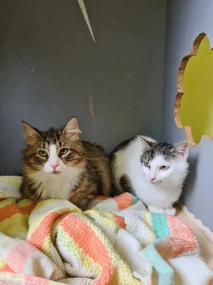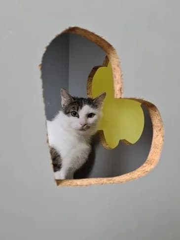 Doria is approximately a three-year-old cat. She is cautious around people and prefers to hide under blankets where it's warm. However, if you give her enough time and pet her gently, she will gradually start to trust you. She gets along well with other cats and loves to sleep with them. In the photo, Doria is sleeping together with Haru. Doria is sterilized, microchipped, vaccinated and has received parasite treatments.