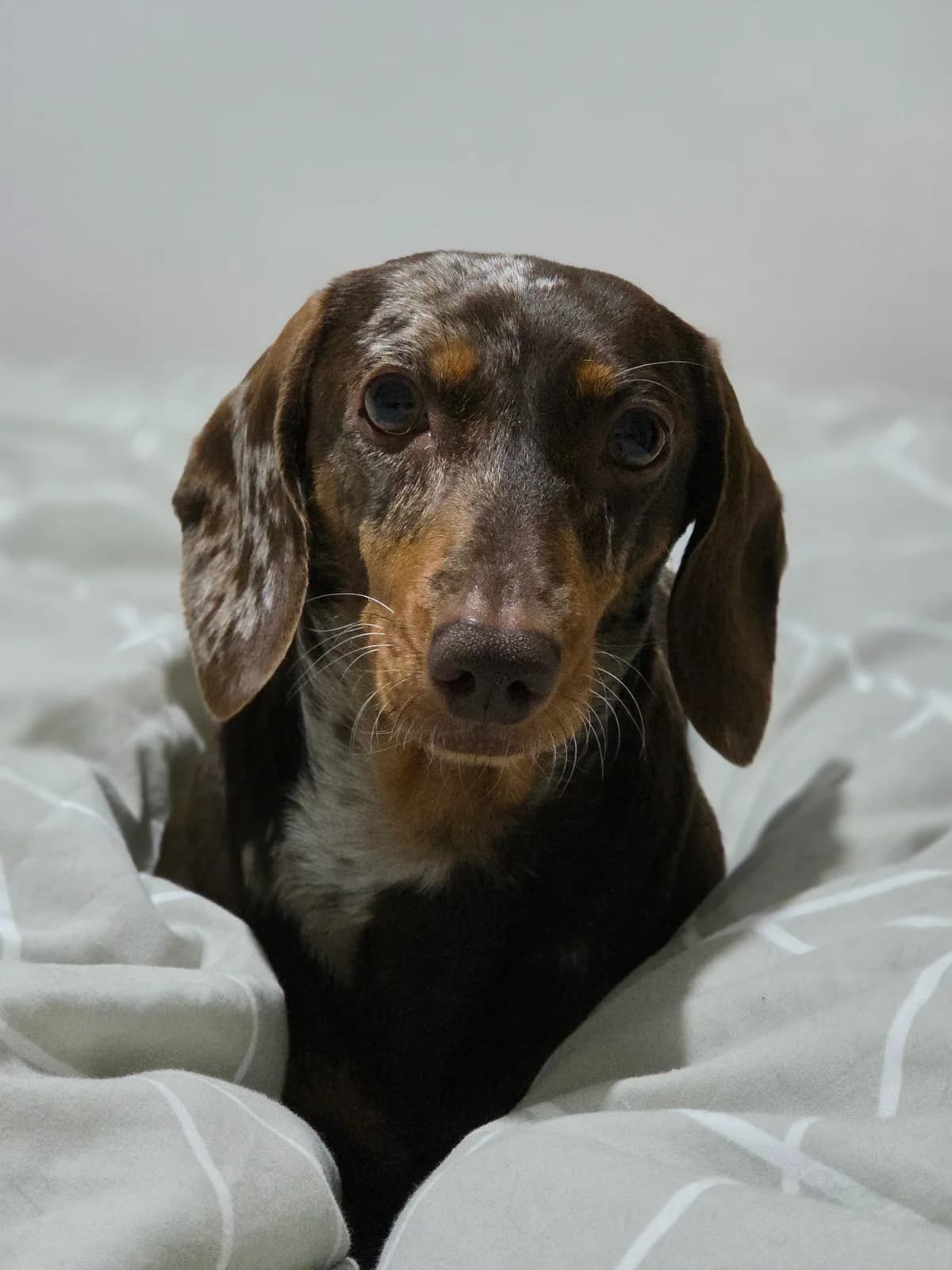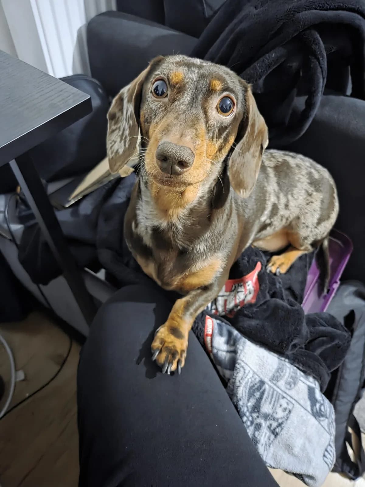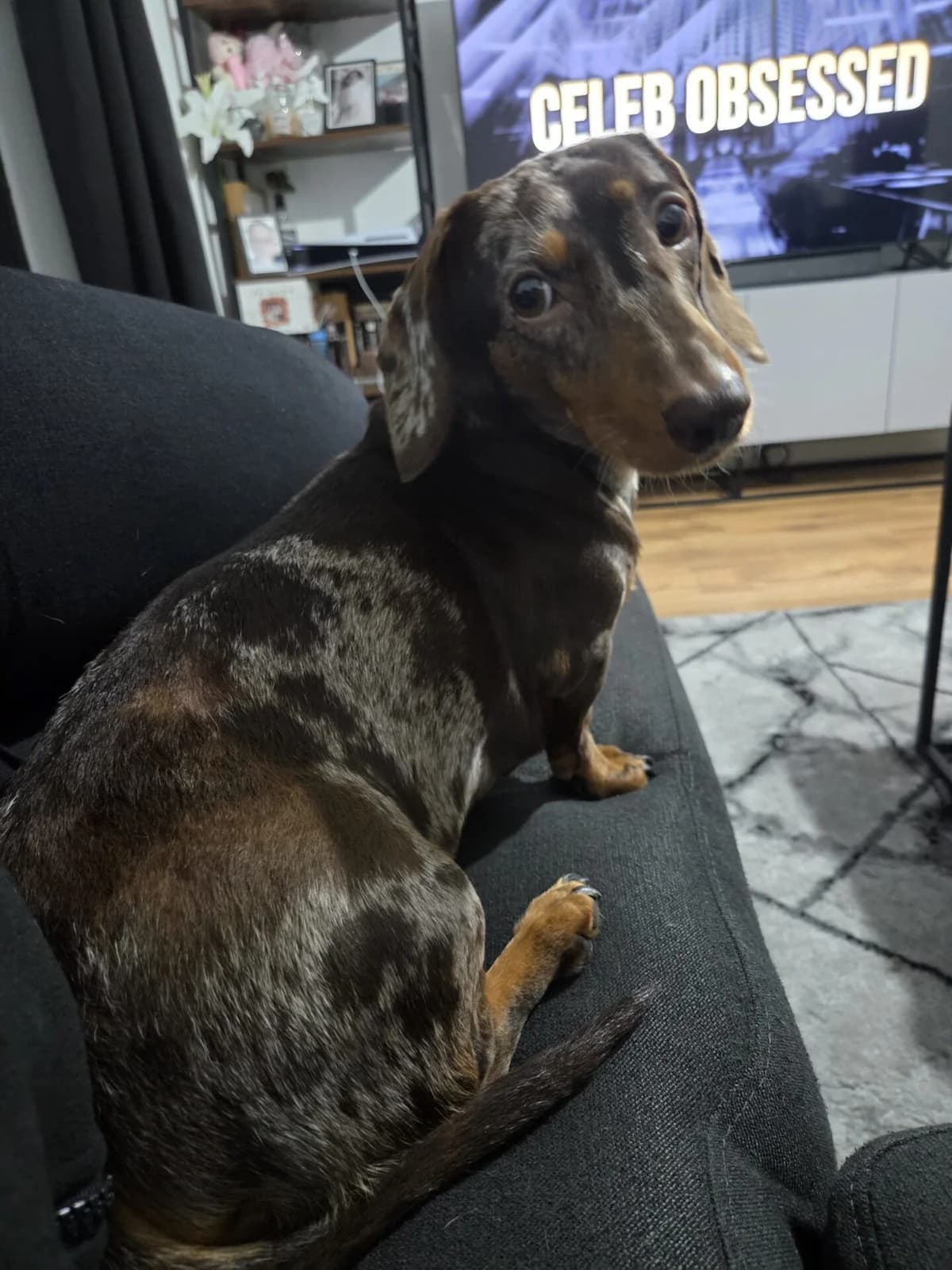 Dotty BRIDGEND, SOUTH WALES Adoption fee for Dotty is £350 4 1/2 years old Smooth, chocolate dapple – tweenie (7 ½ kg) Neutered female Dotty is a lovely dachshund who has had a very hard start. We don’t have much information about her early life, but it is likely she was used for breeding and not given the love and attention all dogs deserve. Her family have worked hard with her and, although she is still an anxious little girl, she is now an affectionate, loving little dog who is starting to learn that the world can be a fun and exciting place. Her family are heart-broken at needing to rehome her but are unable to continue giving her the care and attention she deserves. Dotty could potentially live with a friendly dog or two (ideally dachshunds!) following a successful introduction as she was living with other dogs before being rescued. She has a dachshund best friend and gets a lot of confidence from being with him. Her current owners have been working to help her feel safe and secure when left on her own, but this is a work in progress, so we are looking for a home where her new family are able to continue her training (with support from our behaviourists if needed) and where she will not be left on her own for long. Fortunately, Dotty is a food-motivated dog, so the right treats will make all the difference in bonding with her and her training! Like many dachshunds, Dotty has a big bark and can be vocal around strangers and unfamiliar visitors, but she will settle and accept new people if ignored. She is scared of unexpected noises so her new family will need to be patient and understand that she will settle as she gets used to new surroundings. Once she gets to know people, she is gentle and loving and loves to snuggle under a blanket on the sofa. She can occasionally growl when she has high-value treats, so new owners will need to supervise her around these, particularly with other dogs. Walks outside the home are still a new experience for her and something she has still to learn to love. She is walked on the lead and will avoid strange dogs. Her family use a crate as a safe space for her to go to when she chooses and she sleeps in bed with them at night. Dotty is in good health but can get itchy, dry skin which is currently managed with hypo-allergenic food. She gets very scared and does not travel well in the car, so will be happier in a family where walks are easily accessed nearby. Requirements in a home for Dotty Could live with a friendly dog or two, subject to a successful meet A home where someone is around most of the time No children No cats Someone prepared to travel to Bridgend to meet her To find out more about Dotty please email