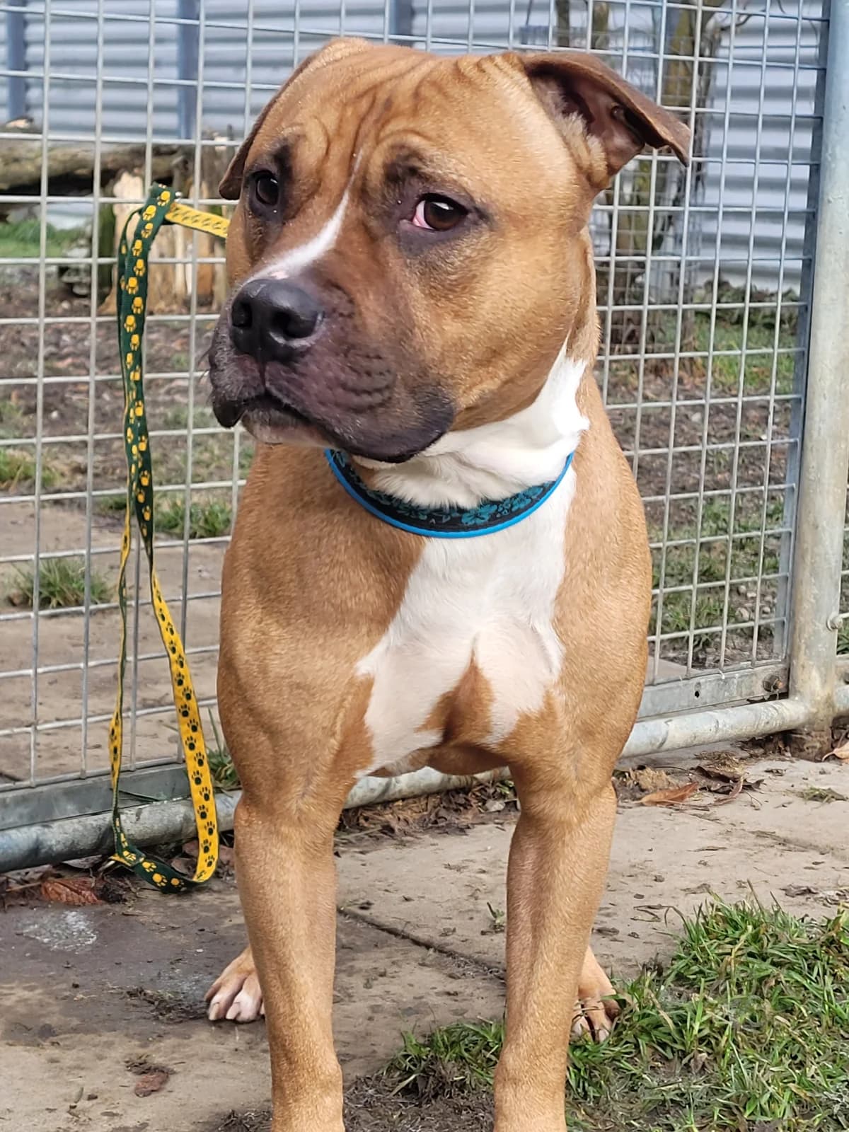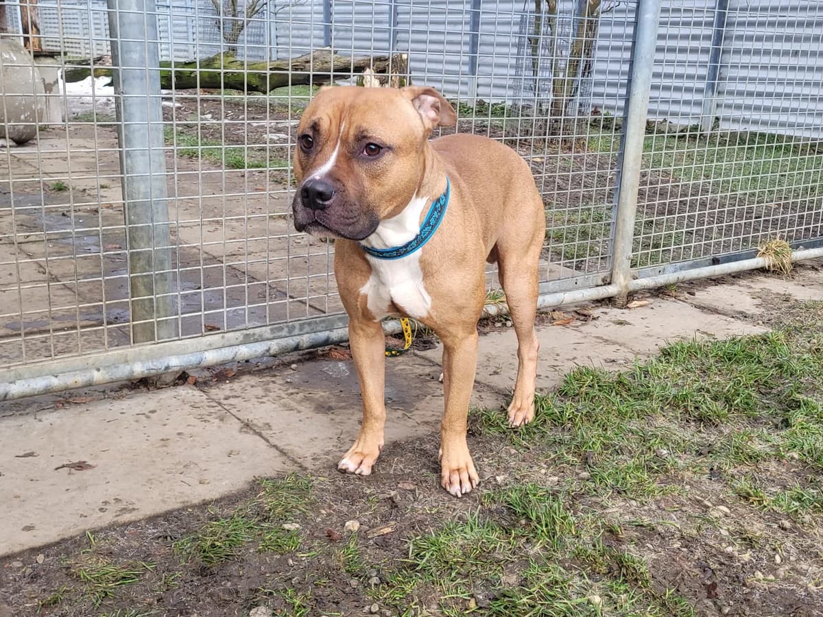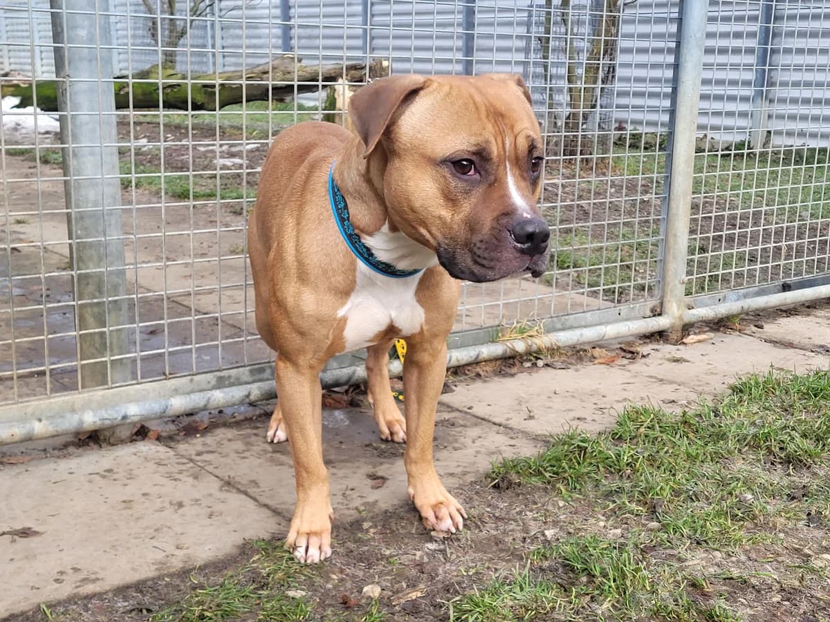 Dozer, Pitbull, 4 years old, is a terrier through and through. He is very active, always ready for Zack and for everything. It is easy to guide, but it can also be thickheaded. In certain situations, he shows himself rather insecure and is happy when he can trust his guide. In the kennel he can be well guided/correct when he is on the ground! There is still a little work to be done on the linen conductivity. With us, he is allowed to let the mess out with a funny, castrated Husky round, he loves it totally! So he needs someone who can give him guidance and security so that he can develop into a great companion with which it will certainly never get bored. So if you're looking for a power package, you're safe at Dozer's right address....