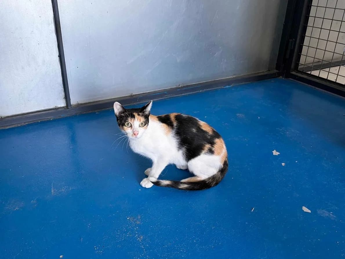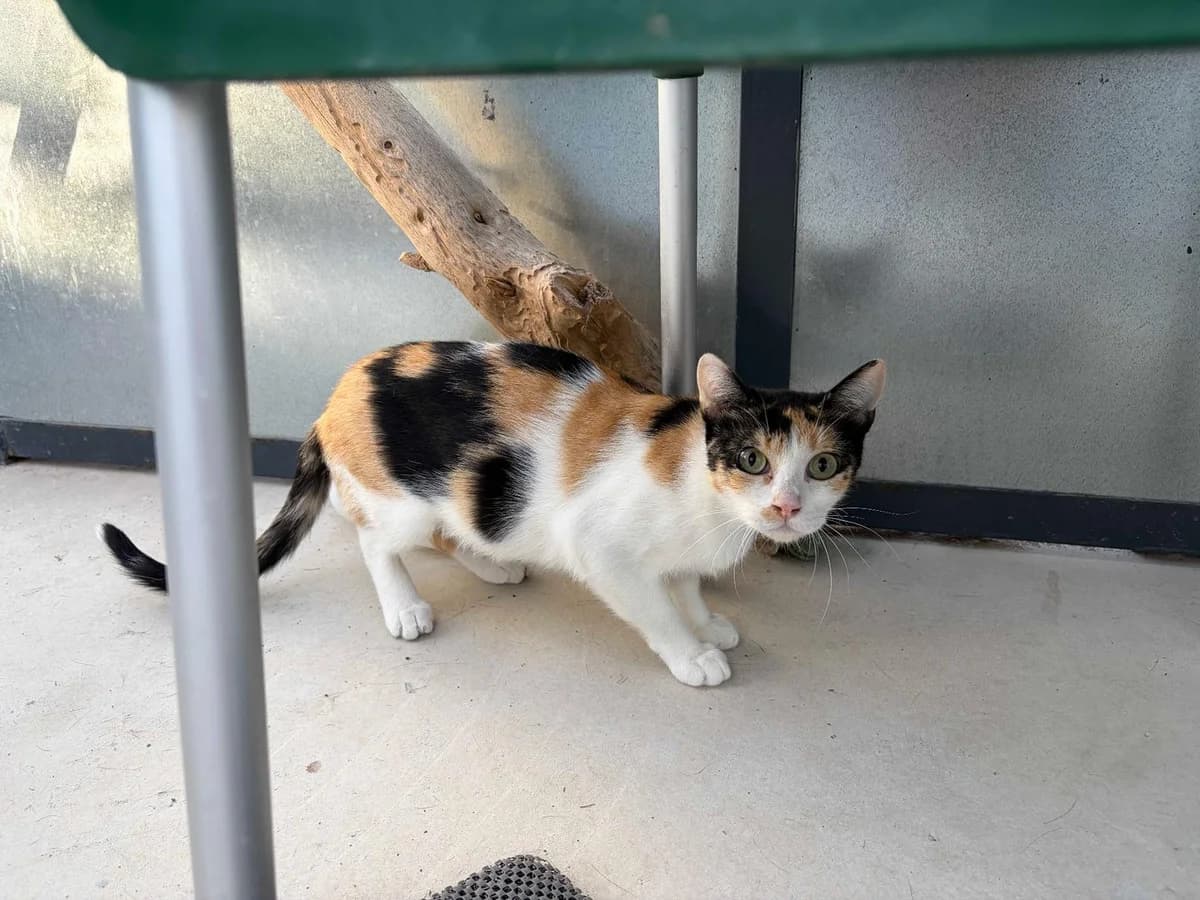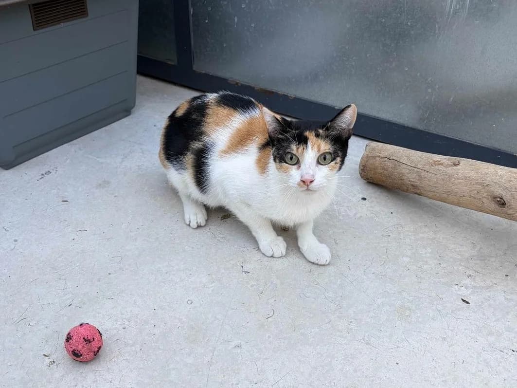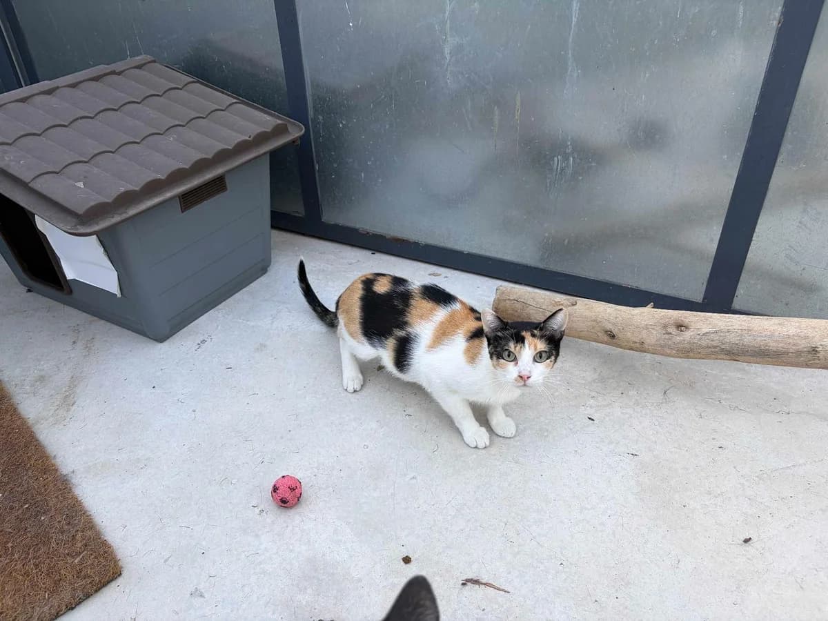 Ebony is a beautiful tricolor cat rescued in July 2025. She is very reserved and currently does not allow approach, handling, or petting. However, she gets along well with other cats. Ebony needs an experienced cat family with patience and understanding to respect her pace. In a calm, safe environment, she will gradually gain confidence. Adopting Ebony means giving her the opportunity to discover love and protection.