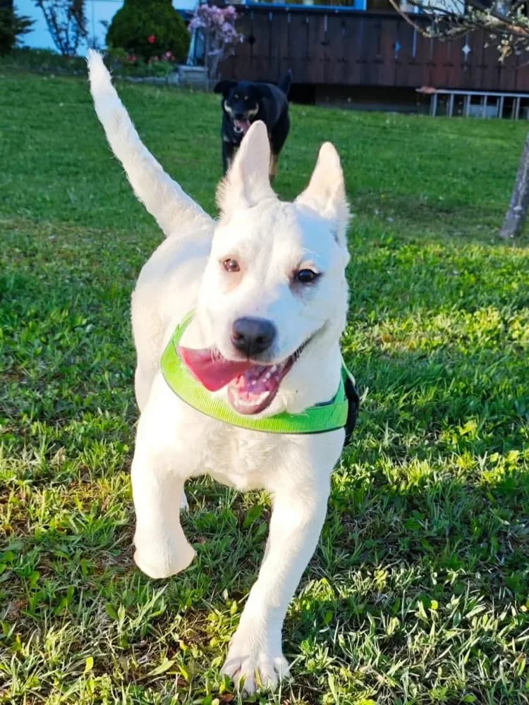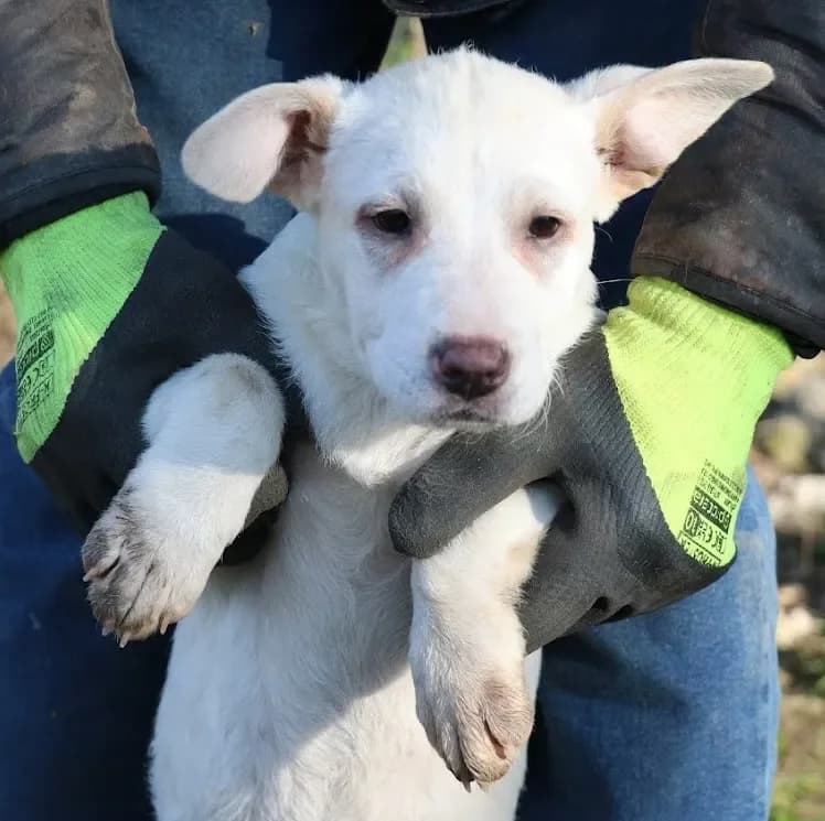 Bei Interesse bitte Fr. Lochmann unter kontaktieren oder ein Mail an das Hallleiner Tierheim schreiben Update 26.4.26: Emelie ist auf Pflegeplatz in Berchtesgaden und ihr Pflegefrauchen spricht in den höchsten Tönen von ihr. Sie lebt mit einer Junghündin zur Zeit zusammen und die beiden verstehen sich wunderbar. Halli, hallo - ich durfte nach Österreich reisen - bin jetzt auf Pflegeplatz nähe Hallein, was hatte ich nur für Glück! Nachdem alles so schlimm angefangen hatte und ich mit meinen drei Geschwistern mich auf einer Strasse wiederfand - mtterseelenalleine, ausgesetzt, nicht mehr gewollt - ein Fresser einfach zuviel! In der Tötungsstation war ich dann untergekommen und siehe da, mein Brüderchen und ich haben doch glatt noch eine Box im Transporter ergattern können. Ich bin der glücklichste Hund, ever! Ab jetzt geht es bergauf- ich werde mir eine Familie suchen, am besten mit kleinen, zweibeinigen Spielgefährten - naja, zu klein sollten sie auch nicht sein, habe ich doch mit meinen 5 Monaten immer noch die spitzen Zähnchen. Dann würde ich auch Katzen offen begegnen, die habe ich nur kurz kennengelernt und irgendwie war mir das grau-braune Fellbündel nicht geheuer. Und überhaupt - was sagt ihr zu meiner Fellfarbe? Kann doch glatt als "Schneehase"durchgehen im Winter, da könnt ihr dann lange nach mir suchen, wenn ich mich platt mache in der Winterlandschaft! Gibt es da nicht einen Verein für "weiße Hunde" ? Ich bin derzeit noch sehr unbedarft und kenne vieles nicht, muss mich erst orientieren und mit euren Alltagsgebräuchen umgehen lernen. Aber ich denke - das ist zu schaffen. Also nochmal - ab dem 27.4. könnt ihr mich nach Terminvereinbarung besuchen kommen - und ich freue mich schon sehr darauf. Ich habe natürlich einen EU Paß, bin gechippt und registriert auf den Verein und Parasiten habe ich auch in Ungarn zurück gelassen!
