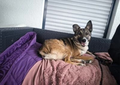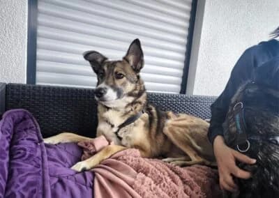 Herkunftsland: Rumänien Rasse: Mischling Geschlecht: weiblich, kastriert Farbe: braun-schwarz Schulterhöhe: 47 cm. Gewicht: 17 kgGeburtsdatum: ca. 2023Standort: 83052 Bruckmühl Emmi, treue Begleiterin wartet in 83052 Bruckmühl auf ihr ZuhauseEmmi wartet schon lange auf ihr Zuhause, vielleicht wartet sie auf dich? Auf ihrer Pflegestelle zeigt sich Emmi als absolut liebe, ausgeglichene und tolle Hündin. Sie benötigt eine klare, ruhige Führung sowie feste Strukturen, an denen sie sich orientieren kann. Bekommt sie diese, zeigt sie sich im Alltag völlig unkompliziert. Aktuell lebt sie mit vielen verschiedenen Hunden zusammen und versteht sich mit ihnen gut. Insgesamt ist sie sehr verträglich, bei manchen Hündinnen entscheidet die Symphatie. Fremden Menschen gegenüber ist Emmi anfangs etwas zurückhaltend. Mit Leckerlis und einer gemeinsamen Gassirunde taut sie schnell auf und lässt sich dann gern kuscheln und schmusen. In neuen Situationen ist sie vorsichtig und braucht Menschen, die ihr Sicherheit geben und sie ruhig anleiten, dann meistert sie diese Situationen sehr gut. Tierarztbesuche, Autofahrten (auch längere Strecken), Treppen, unterschiedliche Umgebungen oder Stadtleben stellen für sie kein Problem dar. An der Leine läuft sie gut und benimmt sich. Emmi ist sehr menschenbezogen, verschmust, treu und liebevoll. Sie liebt Streicheleinheiten. Sie begleitet ihre Pflegemutter gern überall hin. Sie hat eine schöne Balance aus Sportlich und Ruhe, so ist sie gerne unterwegs, kann aber auch gut entspannen und einen gemütlichen Sofa Tag genießen. Sie kann mehrere Stunden alleine bleiben, ist stubenrein und schläft nachts brav durch. An das Leben im Haus und alle Alltagsgeräusche ist sie gewöhnt. Sie ist aufmerksam, lernwillig und möchte gefallen. Bekommt sie jedoch zu wenig Führung, neigt sie dazu, eigene Entscheidungen zu treffen, was zu unerwünschtem Verhalten führen kann. Mit klarer, souveräner Anleitung ist sie aber sehr gut lenkbar. Mit ihrer feinen Nase und ihrer Freude an Bewegung ist Emmi eine tolle Begleiterin für aktive Menschen. Suchspiele oder Mantrailing würden ihr sicherlich auch Spaß machen, sind aber kein Muss. Besucher meldet sie am Zaun, lässt sich aber schnell beruhigen. Jagdtrieb hat sie. Ein Zuhause mit ständig wechselnden Menschen wäre nicht ideal. In einer Wohnung kann sie bei ungewohnten Geräuschen auch mal anschlagen. Kinder ab 12 mit Verständnis für Hunde wären möglich. Katzen mag sie nicht. Ein Ersthund wäre schön aber kein muss.Emmi wäre