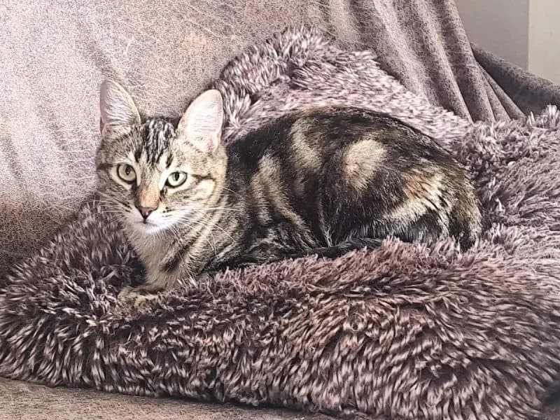 Epifania wurde ca. im Juli 2025 geboren. Das hübsche Tigermädchen Epifania wurde an einer Schnellstrasse mit der Falle eingefangen, ansonst ihm sicher der Unfalltod gedroht hätte. Nach dem Tierarztbesuch durfte es in die Auffangstation ziehen. Die Spanierin Epifania ist gegenüber Menschen noch etwas misstrauisch, sucht aber trotzdem die Nähe zu ihnen. Epifania versteht sich mit ihren Katzengspändli und Hunden. Für die Spanierin Epifania suchen wir sehr erfahrene Katzenmenschen, welche ihr alle Zeit der Welt geben, um anzukommen und die sich bewusst sind, dass sie mit Epifania ein ganz spezielles Katzenmädchen adoptieren. Nun wünscht sich Epifania ein Zuhause zu einem Gspändli mit FREIGANG (weit weg von stark befahrenen Strassen). Vielleicht hat Epifania Glück und darf zusammen mit einem anderen Gspändli in ihr Zuhause im Glück ziehen. Epifania ist kastriert, getestet, gechippt und geimpft und wird mit dem Tierschutzbrief vermittelt.