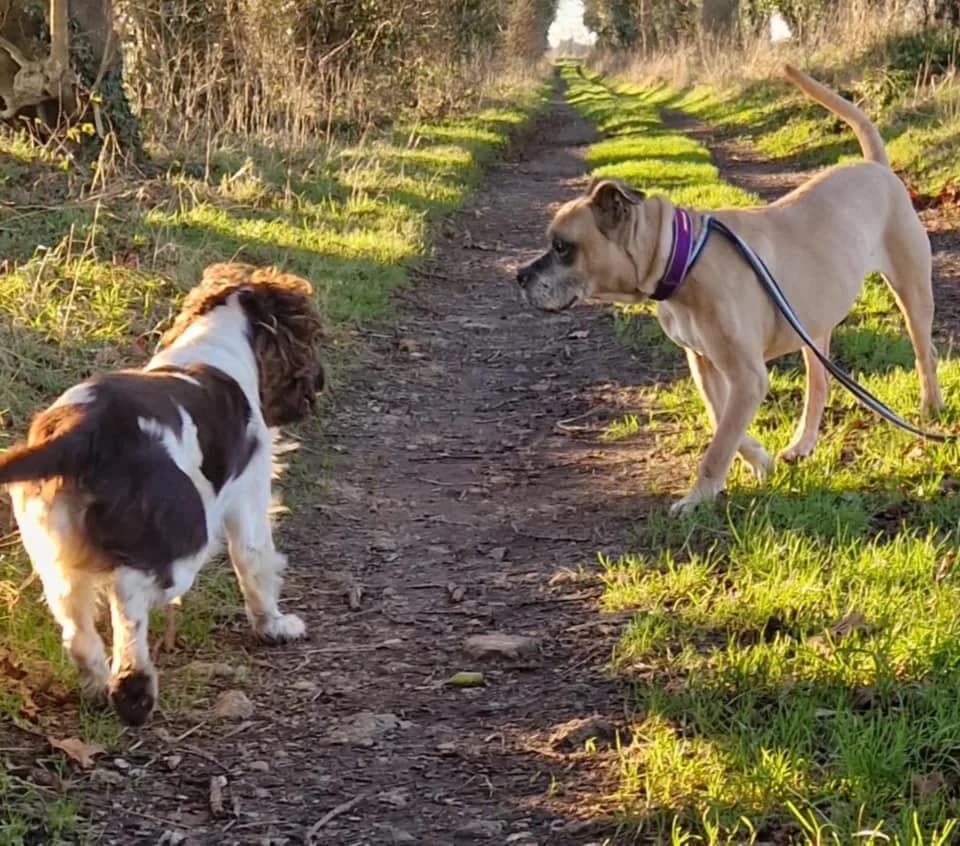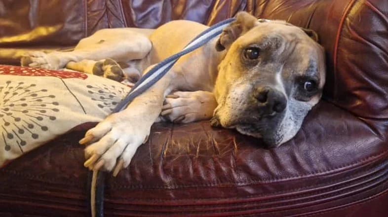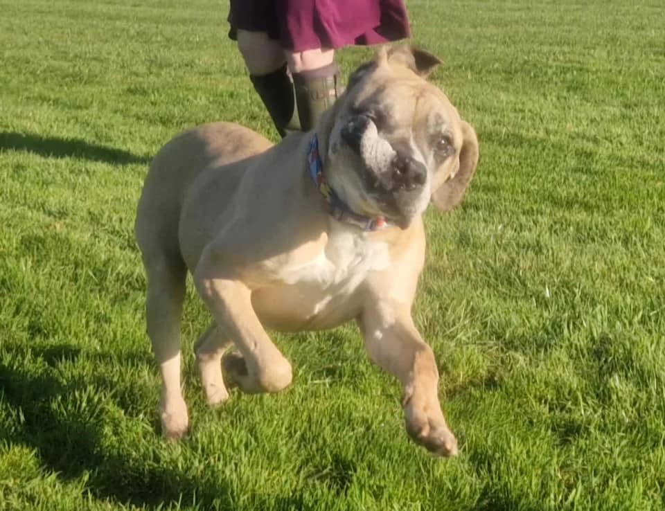 Please help ET by sharing this page! This soppy boy is a Boxer Cross of somewhere between 8 and 12 years. He's in a foster home in Hevingham, Norfolk through Safe Rescue. ET could live with dog savvy children from age 8 and he'd be happy living with other compatible dogs or as an only pet. ET is keen on his walks and can be strong on the lead at first but settles down and walks nicely after the initial excitement subsides. You can expect plenty of Boxer-like goofiness from this sweet boy. ET was brought to the UK from a shelter in Romania after a couple of health crises had him at death's door. You can read more about that on his Facebook post HERE. He's now loving life in his multi-dog foster home but will be even happier with a home and humans to call his own. Safe Rescue have a policy that all dogs adopted from them must wear a slip lead on walks. Please only enquire about Safe Rescue dogs if you are happy to always use a slip lead – extendable leads are not acceptable to Safe Rescue. All dogs have to be collected and a crate must be used. Full details of their rehoming policy are on ET’s details on Safe Rescue’s Facebook . If you can give this sweet boy the retirement home he deserves, please contact Safe Rescue as follows: Tel/Message: or between 9am-5pm Mon-Fri and 9am-4pm Sat Email: Please say you saw ET featured on the Oldies Club website. This replaces ET's original page dated 25 September 2024.