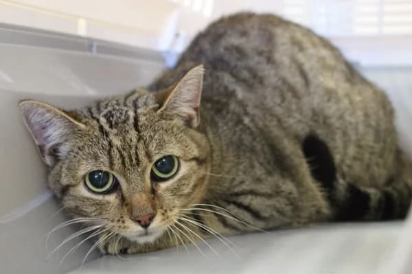 Sturdy plastic carrier — what most shelters require for pickup.