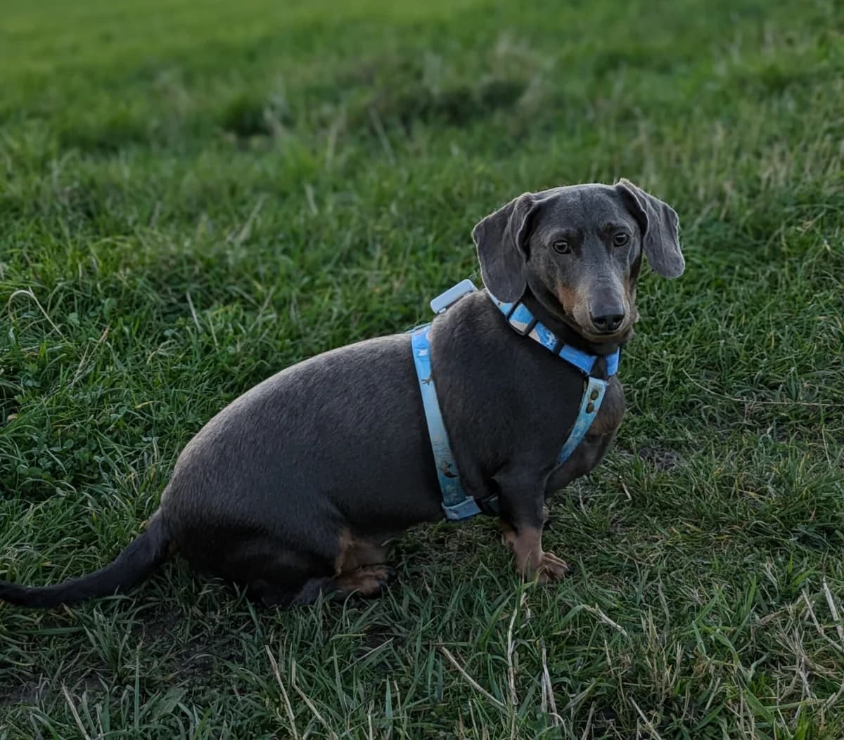 Nottingham 5 1/2 years old Male, tweenie (11kg), blue and tan Neutered Adoption fee for Fergie is £250 Fergie is a bright and intelligent dachshund who is looking for a new home due to illness in the family which means he is not getting the time and enrichment he needs. Fergie is an all-rounder who enjoys daily walks and games with his owner and is equally happy with sofa snuggles! He is a typical dachshund with plenty of character and his own little quirky ways. He can be wary of strangers at first, as he likes to take his time assessing new people, but once he feels comfortable, he forms very strong bonds and is incredibly loyal, affectionate, and loving. He loves physical closeness with his human and will happily curl up for a cuddle whenever he gets the chance. He enjoys playing with his toys and is intelligent and eager to learn, picking up new commands quickly. Outside the home, Fergie is used to meeting other dogs and is a polite dog who might bark at dogs who invade his space but is generally happy to ignore them. He is used to good walk every day and enjoys a good sniff through the undergrowth. Fergie is in good health. He has colour dilution alopecia which is well managed through his diet and anti-histamines. He is house-trained and sleeps in his current owner’s bedroom. Once settled, he can be left on his own for up to four hours. In the right home he will make a devoted and rewarding companion. Requirements in a home for Fergie Someone who is around much of the time No other dogs, is ok with some but prefers his own company! No cats No young kids, possibly Mature teenagers To find out more about Fergie please email