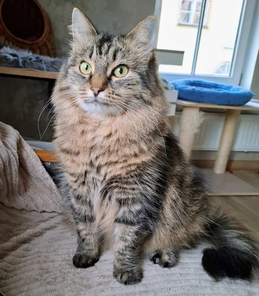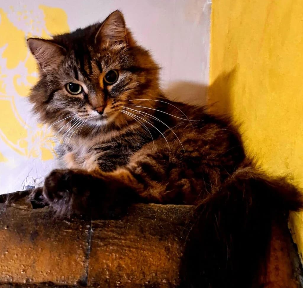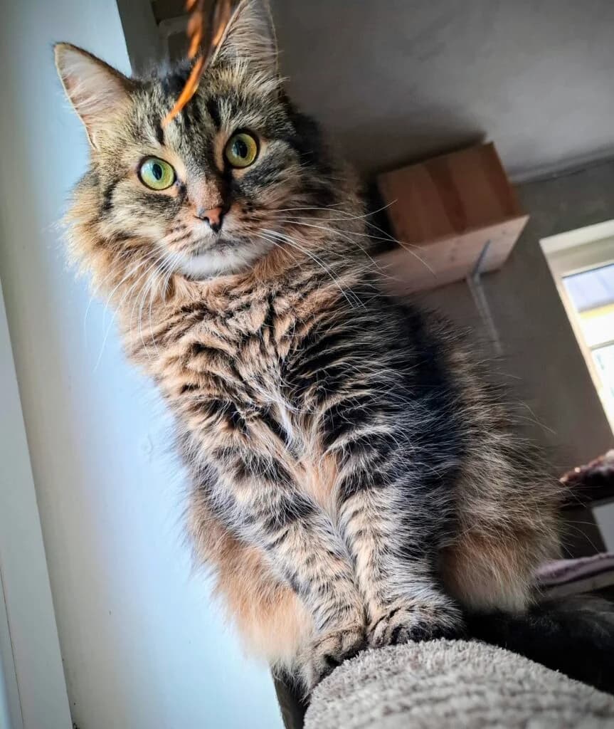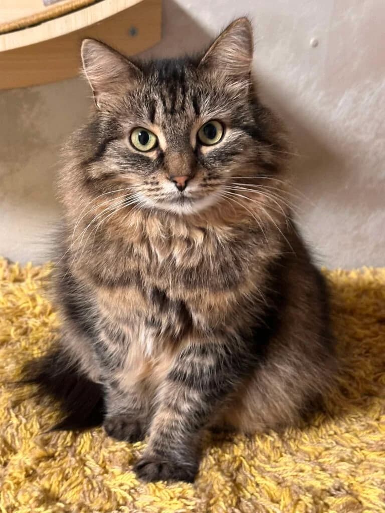 Frosja on uhke pikakarvalise pruuni kasuka ja kuldkollaste silmadega kaunitar, kes vaatab täpselt sinna, kuhu keegi teine tavaliselt ei julge vaadata – otse hingepõhja. Frosja on väga iseteadlik daam – tema seltskonda võib küll nautida väikeselt distantsilt, maiust koos maitsta, aga pai teha… seda luksust Frosja veel ei paku. Tema kasukas on imetlemiseks silmadega, mitte kätega. Kui talle liiga lähedale minna, tervitab ta sind armsa kähinaga – see on tema viis öelda “Tere!”, kuigi Frosja ise ilmselt arvab, et möirgab nagu lõvi. Meie oleme tema tervitusega juba harjunud ja see teeb Frosjast lihtsalt veelgi omapärasema ja armsama tegelase. Frosja on sündinud 2018.aasta sügisel.