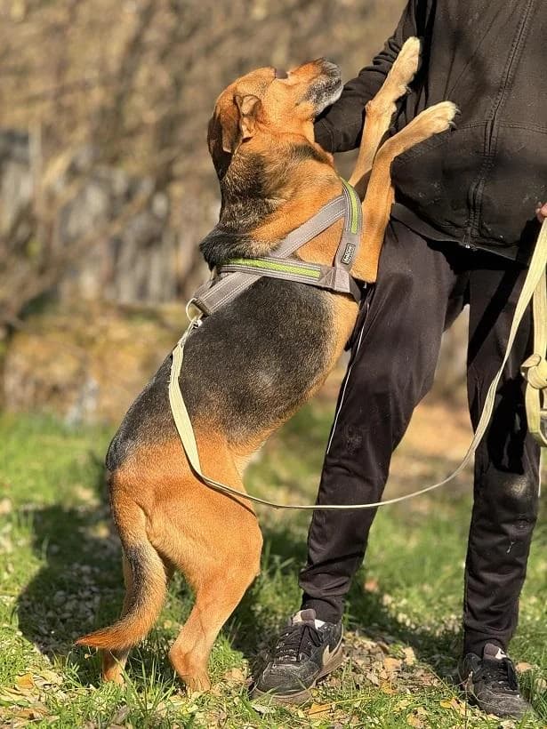 Kyra egy nagyon kedves kutyus. Aktív, akivel lehet nagyokat kirándulni is. Pórázon egyre ügyesebben sétál. Jutalomfalatért cserébe sok mindenre képes és le lehet vele venni a lábáról. Nagyon szereti az embereket. Kan kutyával és gyerekkel abszolút barátságos, szukákkal szoktatható. Olyan gazdát keresünk neki, ahol teljes értékű családtag lehet, mert sajnos eddigi életében csak egy láncon tengődött.