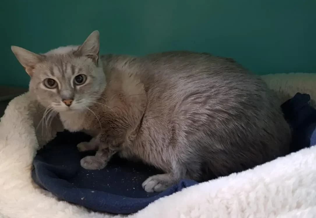 Gasby fait partie des 11 chats récupérés dans un appartement suite au décès de leur propriétaire. C’est un chat calme, un peu craintif, mais il est tout à fait possible de le caresser. Il aura cependant besoin de personnes calmes et patientes pour qu’il puisse progressivement se détendre.