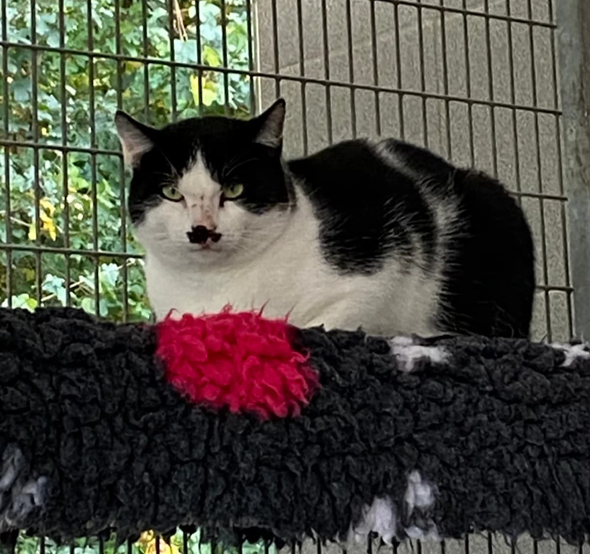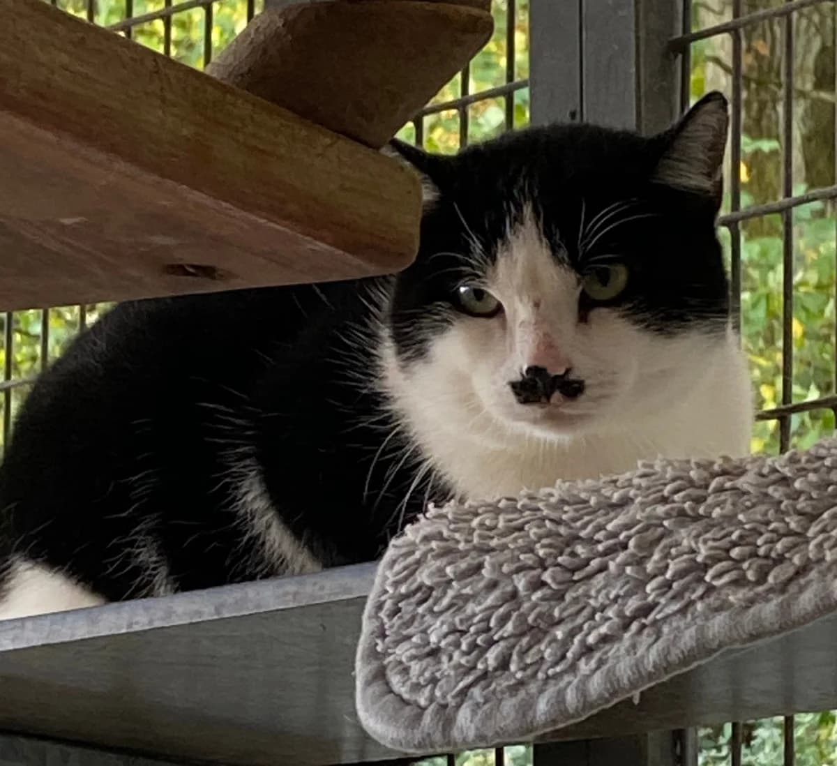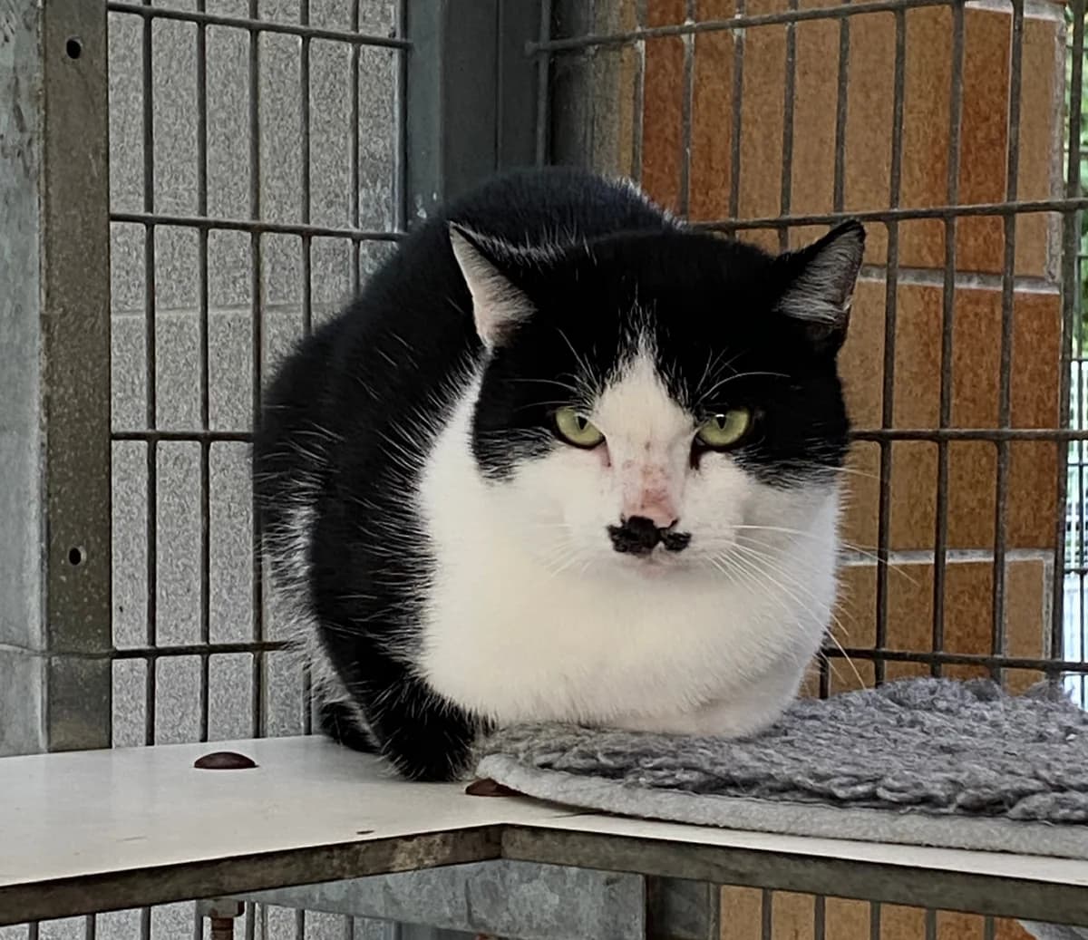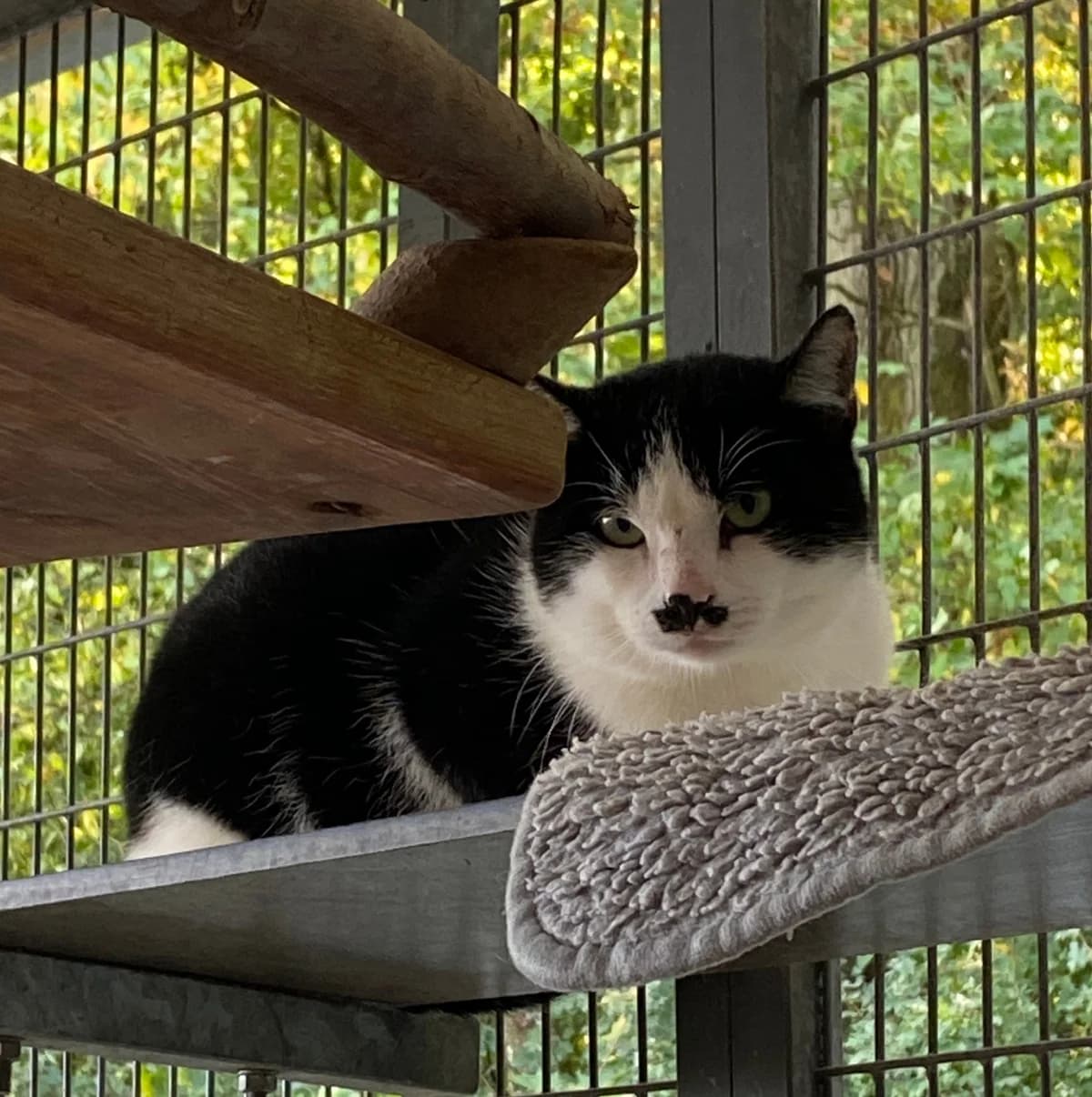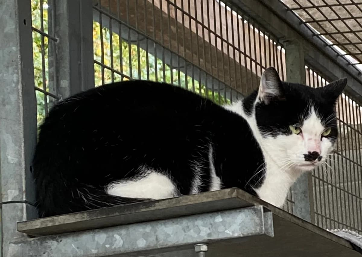 "An meiner Devise „Nur gucken, nicht anfassen“ halte ich eisern fest. Wer mir zu nahe kommt, erntet immer noch meinen legendären „Komm-mir-nicht-zu-nahe“-Blick. Ich bin kein Angreifer – fauche und kratze nicht –, ich wähle stattdessen die vornehme Flucht und geht einfach meiner Wege, wenn es mir zu bunt wird. Auch wenn Streicheleinheiten noch in weiter Ferne liegen, gibt es einen Weg zu meinem Herzen : Leckerlis ! Mittlerweile nehme ich diese gerne an und taue in diesen Momenten kurz auf. Den Rest des Tages verbringe ich am liebsten stoisch beobachtend aus sicherer Entfernung oder in Gesellschaft der anderen scheuen Katzen. Ich bin absolut sozial mit Artgenossen und brauche deren Nähe als Sicherheit. Ich suche Menschen mit Geduld, die keine Schmusekatze erwarten, sondern sich an meiner ruhigen Präsenz erfreuen."