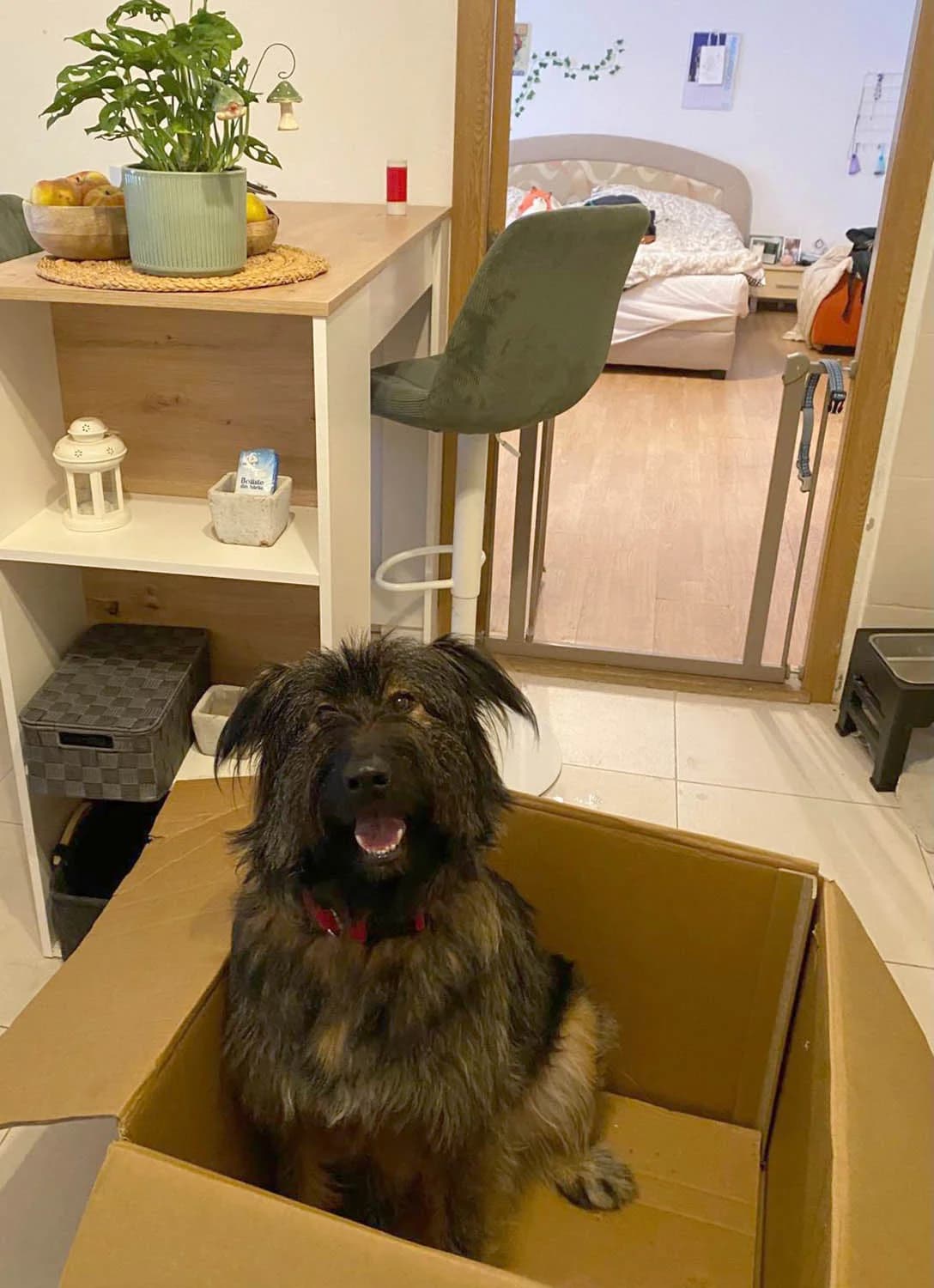 Rasse: Mischling Geschlecht: männlich Alter: 2,5 Jahre (geboren Sommer 2023) männlich Schulterhöhe: 56 cm, 25 kg Kastriert: ja Katzenverträglich: kann getestet werden Grey wurde zusammen mit drei anderen Welpen mitten im Winter im “Niemandsland” ausgesetzt. Zum Glück wurden alle noch rechtzeitig gerettet. So kam Grey zu uns, wo er sich, dank seiner fürsorglichen Pflegestelle zu einem ausgeglichen und freundlichen Hund entwickelte, der nun sein eigenes Zuhause sucht. Grey ist ein sehr anpassungsfähiger Hund mit einem ausgesprochen freundlichen und liebevollen Wesen. Er zeigt sich im Alltag entspannt, gelassen und gleichzeitig aufmerksam gegenüber seiner Bezugsperson. Grey folgt seinem Menschen gerne überallhin, respektiert dabei aber stets den persönlichen Raum und ist nicht aufdringlich. Insgesamt wirkt er sehr stabil im Charakter, er ist immer lustig und gut gelaunt und ist ein angenehmer Begleiter. Er ist ein Hund, der sich gut an verschiedene Tagesabläufe und Lebenssituationen anpassen kann. Im Umgang mit Menschen ist Grey äußerst verschmust und sucht Nähe. Er zeigt sich sehr anhänglich, unabhängig davon, ob es sich um Männer oder Frauen handelt, und genießt Zuwendung sehr. Auch während Spaziergängen ist er froh, wenn er von den Passanten bewundert oder gestreichelt wird. Er wirkt dabei offen, herzlich und sehr menschenbezogen. Kindern gegenüber verhält er sich freundlich, er mag diese und spielt gerne mit ihnen. Mit anderen Hunden versteht sich Grey sehr gut. Er kommt sowohl drinnen als auch draußen problemlos mit Rüden und Hündinnen zurecht. Er zeigt keine Unterschiede im Verhalten je nach Geschlecht des anderen Hundes. Im Freilauf fühlt er sich sehr wohl und hat bereits gleichzeitig mit mehr als acht Hunden gespielt. Er ist sozial, freundlich und sicher im Kontakt mit Artgenossen. Auch an der Leine bleibt er ruhig und kontrollierbar. In seltenen Fällen kann es vorkommen, dass er beim ersten Hund des Tages einmal kurz bellt. Grey lebt aktuell in einer kleinen Wohnung und zeigt, dass er sehr gut in einem Apartment zurechtkommt. Er ist äußerst sauber und erledigt seine Geschäfte zuverlässig draußen, selbst bei längeren Abwesenheiten. Grey ist boxentrainiert und verbringt die Zeit des Alleinseins in seiner Box. Er bleibt dort ruhig, entspannt und versucht nicht, die Box zu öffnen. Selbst wenn sich ein anderer Hund frei im selben Raum aufhält, bleibt Grey gelassen in seiner Box. Dieses Verhalten zeigt er konstant und zuverlässig. Sein Energielevel ist insgesamt niedrig bis mittel. Im Haus ist Grey ruhig, schläft viel und kann sich selbstständig beschäftigen. Er spielt entweder alleine, mit seinem Menschen oder mit einem anderen Hund. Besonders gerne beschäftigt er sich mit Kauartikeln, Schleckmatten, Intelligenzspielzeug und gefüllten oder gefrorenen Kongs. Besonders angetan ist er von Plüschtieren mit Quietschgeräuschen, die er gerne sammelt und auch vom Bett stiehlt. Außerdem frisst er gerne Pfirsiche. Draußen ist er ebenfalls angenehm ausge