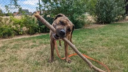 Dog External JESSY *Pfleframes* Born 01.07.2014. Gender female. Race American-Bulldog-MixFellcolor brown-streamedshoulder height 50 cmHund tolerated noCattle tolerated noChildren tolerated yesAnnext dog noAlline stay condition Jessy is looking for a home... Jessy was born in 2014, friendly, cooperative and open-minded, but also different. In dog treats, it is sometimes directed against humans at their leash and is also quite deculent. In many situations, it is now easy to respond, in some people the nerves go through. However, one can learn to deal with their failures, but the muzzle should remain a constant companion. Artisans should not live in the household. She also shows herself motivated by hunting, which also excludes other animals in the new home. If she takes her people seriously, she's a really cool companion. I like her very much – Klabauterkoeter <img src=" alt=" d