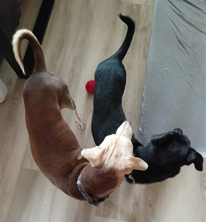 Jet was found along a busy road when she was 3 to 4 months old. She was probably hit by a car or scooter and one of her hind legs didn't look good. She was treated and three of the four toes could unfortunately not be repaired and are missing now. Despite this limitation Jet can use the leg, though not always completely. Fortunately, she has become a beautiful dog with good food. Jet is now staying with her buddy Choki (also on the AAI website) in a host family. Jet is a quiet, sweet doggy who likes to meet people, but is not pushy. She enjoys a pet or hug, but can also relax in her basket, preferably in the sun. She likes to play with other dogs and quickly accepts new dog friends, but can also clearly indicate her limits. Despite her paw, Jetje likes to walk, a walk of about 45 minutes is no problem, preferably together with another dog. As soon as she gets used to it, she can run loose and stay close. Jet grew up in a house with other dogs, cats and chickens. She leaves cats alone and can live well with other animals. She has no experience with children, but her calm character probably makes it possible for her to deal well with them, provided there is mutual respect. She enjoys looking around the garden several times a day and likes to lie outside in the sun. Inside she is quiet and wants to be near people and other animals. Jet is a tolerant and easy doggy but doesn't let herself be counted away, she has clear preferences and indicates what she does and doesn't like. Jet can possibly be kept alone, but she would like life much more together with another dog or a cat. A house with a sunny garden would certainly give her a lot of fun.