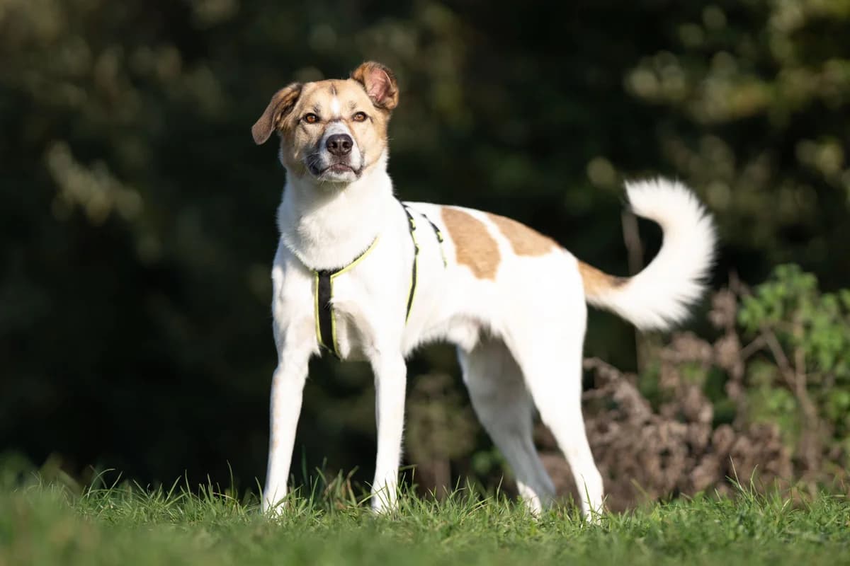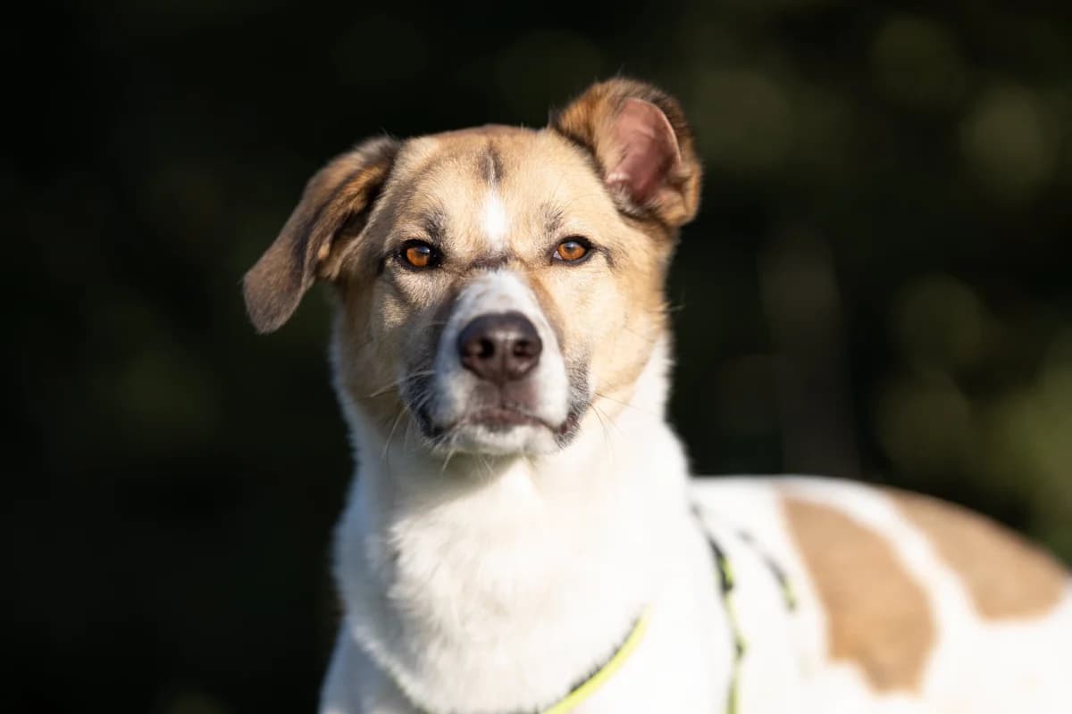 Deze knapperd genaamd Joey is 4 jaar oud (geboortedatum: 01-03-2022). Hij is een grotere kruising die oorspronkelijk uit Roemenië komt. Op een leeftijd van een half jaar is hij naar Nederland gekomen. Joey heeft een litteken op zijn neus en een afgescheurd oortje, dus waarschijnlijk heeft hij het een en ander meegemaakt op straat. Joey is uiteindelijk bij ons binnengekomen omdat er een gezinsuitbreiding was en hij niet goed reageert op visite. Joey is een echte kat-uit-de-boom-kijker; hij moet onbekende mensen echt leren kennen. Eenmaal vertrouwd is het een grote knuffeldoos en kan hij ook lomp met je stoeien. Zijn vorige baas heeft een aantal commando’s aangeleerd en tegen betaling voert hij deze dan ook uit. Rennen vindt hij leuk en als hij daarbij op een ton of over een hindernisje mag springen, vindt hij dat erg leuk. Hij doet echter ook graag waar hij zelf zin in heeft. Zo kan hij lekker door blijven snuffelen als je hem roept. Doe je extra leuk, dan komt hij altijd wel! Wandelen vindt Joey fantastisch en daar geniet hij volop van. Bij de vorige eigenaren liep Joey los in het bos. In de opvang reageert Joey wisselend op andere honden; teven vindt hij leuker dan reuen. Vooral de energie van de andere hond speelt hierbij een rol. Dit uit zich in een voorkeur voor rustigere honden. Joey’s zijn uitdaging zit voornamelijk in zijn gedrag in huis richting onbekende mensen. Hij kan waaks zijn, maar is vooral erg onzeker. Hij kan naar visite grommen en of blaffen en wij hebben gemerkt dat hij sterker reageert op mannen dan op vrouwen. Een nieuwe eigenaar zal dit dan ook zeker moeten begeleiden. Wij leggen dit verder uit tijdens een kennismaking. Joey is een hond die het goed doet in een rustige omgeving met niet te veel prikkels. Dit betekent een huis met een klein gezin en waar niet te veel mensen over de vloer komen. Bij de vorige eigenaren reageerde Joey niet goed op kinderen; deze zijn voor hem onvoorspelbaar en dat vindt hij spannend. Hierdoor kan hij reageren