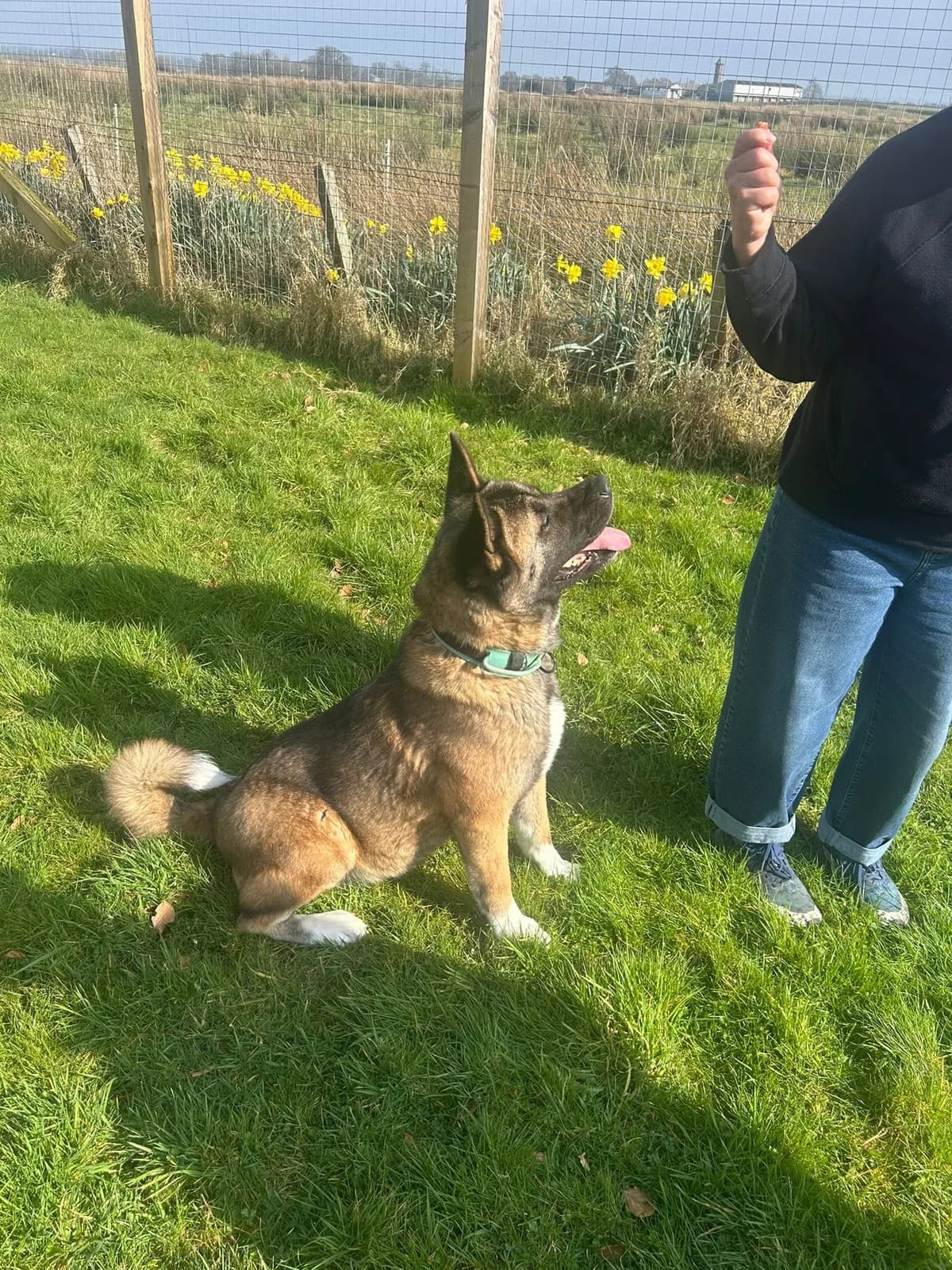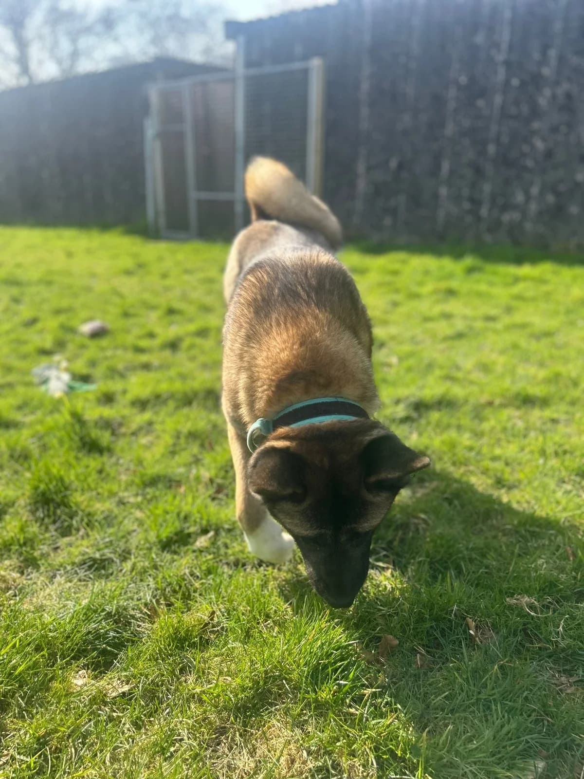 Keira is a beautiful, lively girl who was heartbreakingly found abandoned just before Christmas. Despite her rough start, she hasn’t let it dull her spirit, she is full of energy, affection and enthusiasm for life. Keira is estimated to be around 2–3 years old, she absolutely adores human attention and will happily give all her love back in return. She is very people orientated and just wants to be near you. Training will be a big part of Keira’s journey. She doesn’t yet know basic commands such as sit or lie down, and she can be quite excitable on walks, so lead training and consistent guidance, rules and setting firm but fair boundaries will be essential. An active home would be best suited to this beautiful girl. She would fare well in a home where she’s not left alone for long periods. She will thrive with a patient, understanding owner who is willing to put in the time and effort, and the reward will be a truly loving companion. Kennel staff have reported no signs of food aggression; her food bowl can be lifted and returned without any issues. She is not reactive to other dogs in the kennels and could potentially live with a neutered, large breed male dog, following careful introductions. Keira has not been cat tested, so we are looking for a cat-free home to be on the safe side. Due to her bouncy, energetic nature, she would be best suited to a home with dog-savvy children aged 12+. Keira is a girl who has so much love to give and just needs someone willing to guide her and show her what it means to be part of a family.