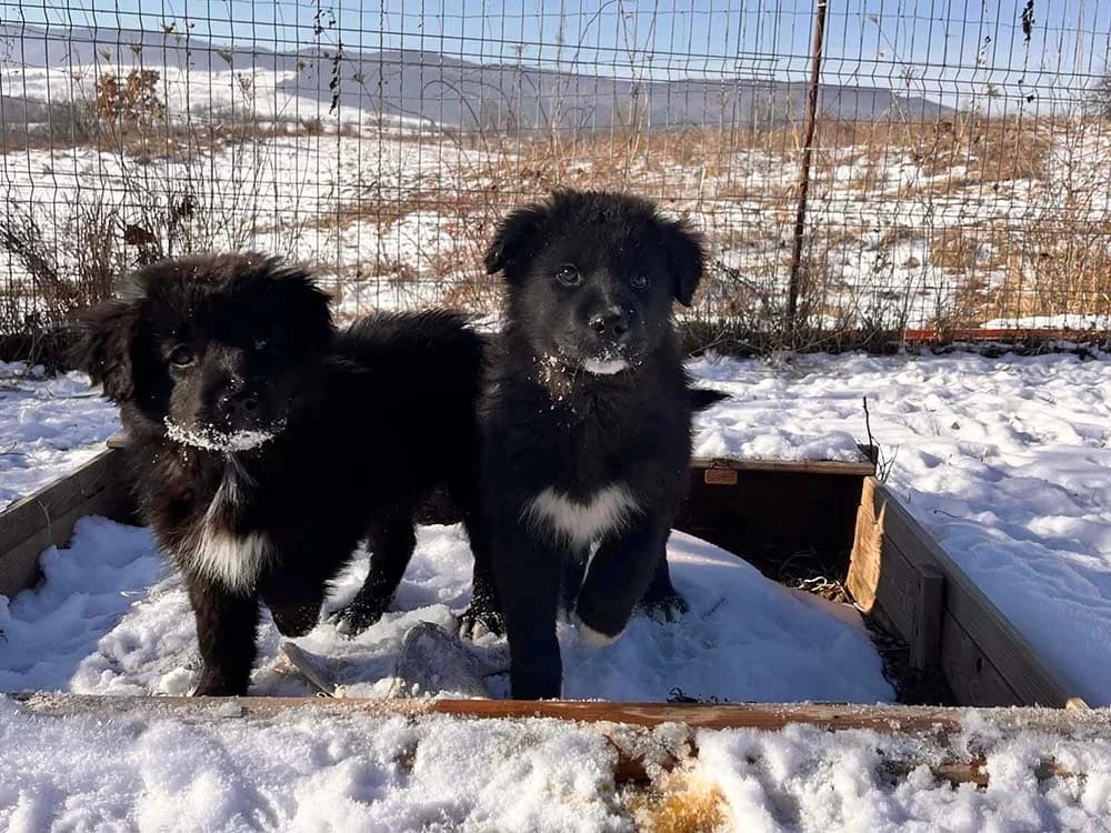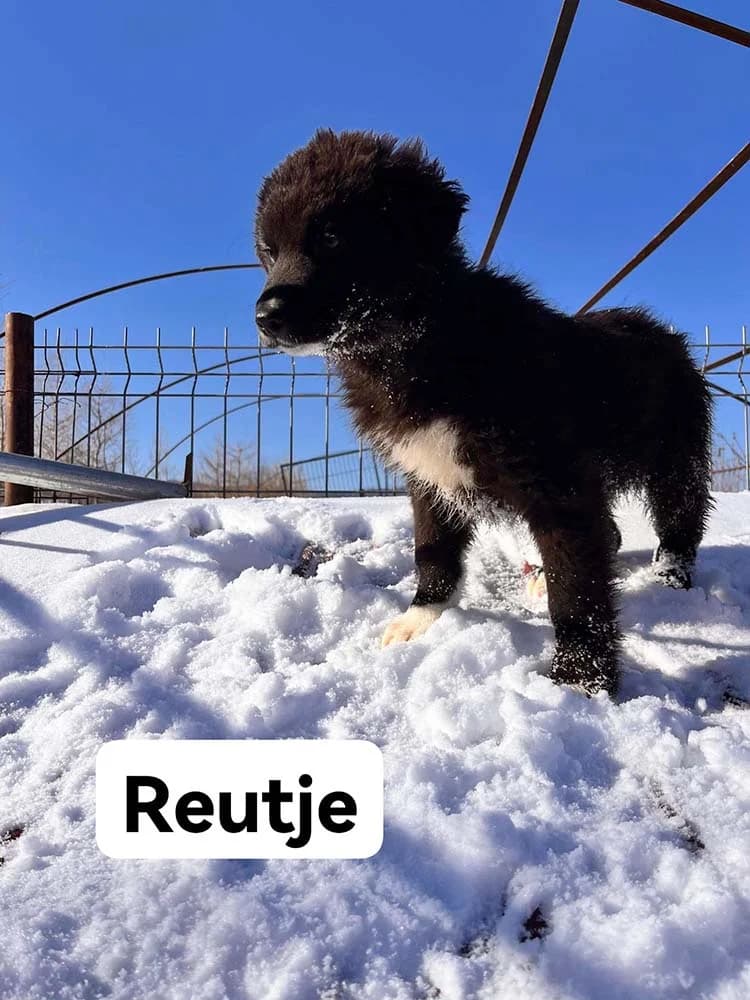 Informatie: Enkele van onze teamleden zijn in januari, mei en oktober 2024 telkens enkele dagen op bezoek geweest bij Elisa's asiel in Roemenië; het asiel waarmee we intensief samenwerken. Ze hebben onder andere puppy Kenny en zijn zusjes ontmoet. Elisa trof de puppy's aan nadat ze door iemand gedumpt waren en heeft ze een plekje in het asiel gegeven. In januari en in maart 2025 zijn een aantal teamleden opnieuw op bezoek geweest bij Elisa’s asiel, ze hebben met Kenny gewandeld en zeggen het volgende over hem: Kenny deze mooie jongen lijkt wel iets weg te hebben van een Raven shepherd qua uiterlijk maar ook qua karakter. Hij liet tijdens onze wandeling al zien dat hij een sterke voorkeur voor één van ons had, daar trok hij meer naartoe. Kenny zou het beste tot zijn recht komen als erf en gezinshond is een rustige woonomgeving en rustig huishouden. Een al aanwezige hond als steun en speelmaatje heeft onze voorkeur, plaatsing alleen is in overleg mogelijk Meer informatie hierover vind je in ons artikel Zwarte honden - waarom maken ze minder snel kans op adoptie❓ De filmpjes geven een goed beeld van de pups; bovendien kan ons teamlid Rolien, die in het asiel uitgebreid met ze heeft geknuffeld en ze heeft geobserveerd in verschillende situaties, aan potentiële adoptanten of gastgezinnen nog wat meer over ze vertellen. In het asiel zijn de honden veilig en krijgen ze goed te eten. Maar het is een leven opgesloten in een onverwarmde kennel en in zeker in de winter is dat erg zwaar; de winters in Roemenië brengen matige tot strenge vorst met zich mee en veel sneeuw...