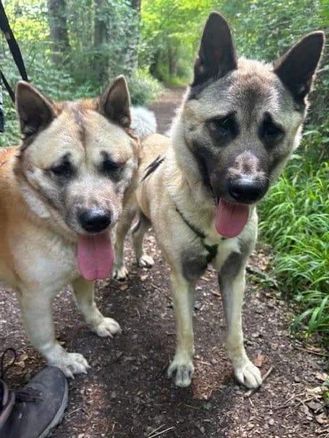 Luna and Kenshi – A bonded pair available for adoption Luna (female) aged 6.5 & Kenshi (male) aged Nearly 5 Both dogs were surrendered into a pound, the previous owner having failed to provide even the basics of animal care and veterinary attention and were on an imminent PTS list until their rescuers offered them a lifeline in the nick of time. With proper nutrition, care, veterinary treatment and neutering both dogs have turned the corner. We are advertising this delightful duo on behalf of another rescue organisation in the hopes of helping find the pair the loving home the truly deserve. What a delightful pair of dogs, they are both undemanding and soft, gentle and seek affection and bestow it upon you with a big lick. Patient at walk times, letting you harness them up without fuss even though excited about the prospect of going for a walk. Luna is a dream to walk, she doesn’t pull at all, she is so laid back, calm and collected, with a loose lead right by your side. What a good girl! Kenshi is bouncier and more energetic, he zig zags between the smells on either side of the walk, however he is still so gentle with no real pull, he soon settles down. He has a playful side and likes to play bow and pounce with Luna. Both dogs are happily interested in other dogs and people they meet, no reaction other than an increased interest in their direction and a waggy tail! Ideal Home No Cats: They have not been tested and no previous history Children aged 12+: Dog savvy children, we have no history Secure garden with robust 6ft fencing Not suitable for life in a flat. If you’re in rented accommodation, please provide proof of your landlord’s permission for a large breed dog. This is non-negotiable. Are You Luna & Kenshi’s Forever Home? They deserve a fresh start with a loving family who can offer a secure and caring home they truly deserve. If you think you can provide the life they dream of, we’d love to hear from you. Please reach out and complete an application form to make Luna & Kenshi a part of your family.