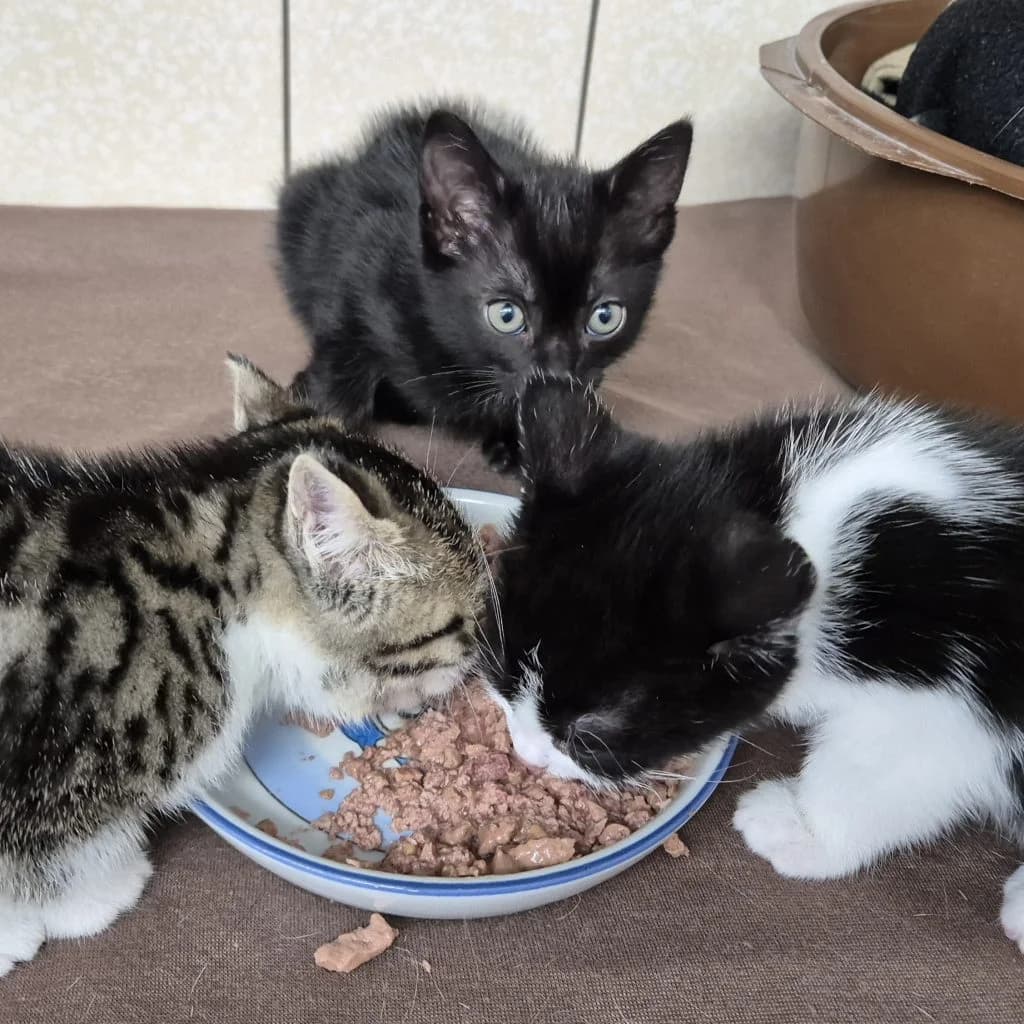 Name des Tiers:Kiefer Birke Ahorn Bestandsnummer:139_F_26 140_F_26 141_F_26 Aufnahmegrund:Fundtiere Im Tierheim seit:17.04.2026 Rasse:EKH Geschlecht:männlich weiblich männlich Farbe/Felllänge:schwarz schwarz weiß getigert mit weiß Geburtsdatum:01.03.2026 Schulterhöhe/Gewicht: Fundort/Abgabegrund:Moers Tierbeschreibung:Wohnung mit abgesichertem Balkon 30.04.2026 Unsere drei Fundkitten, die in einem Karton im Wald gefunden wurden, sind inzwischen entwurmt, gechipt und bereits einmal geimpft. Nun sind sie bereit, eigene Zuhause zu suchen. Kiefer ♂ Birke ♀ Ahorn ♂ Wir vermitteln Kitten nicht in Einzelhaltung – nur paarweise oder zu bereits vorhandenen ähnlich alten Katzen und natürlich ist es immer schön, wenn Geschwister zusammenbleiben können. Kitten brauchen viel Ansprache und Zuwendung, um eine gute Bindung zum Menschen aufbauen zu können und ein kleines bisschen Do´s und Dont`s mit auf dem Weg zu bekommen. Auch wenn sie noch viele Ruhepausen einlegen, sollte das über den Tag verteilt gegeben sein. Keinesfalls sollten sie regelmäßig ganztägig ohne die Interaktion zu ihrem Menschen sein. Spontane Besuche sind leider nicht möglich. Bei Interesse an unseren Kitten stehen die vermittelnden Kollegen für telefonische Erstgespräche von Montag bis Freitag von 14 – 17 Uhr und Samstag von 13 – 16 Uhr zur Verfügung. Wir bitten darum, sich an diese Zeiten zu halten, da nach den regulären Alternativ erreichen Sie die vermittelnden Kollegen auch per Email: (Bitte immer mit Angabe einer Gestern Abend wurden vier Kitten in einem Karton an der Römerstraße/ Baggerstraße in 47445 Moers gefunden. Wer die Kitten kennt oder vermisst, kann sich bitte direkt telefonisch im Tierheim melden.