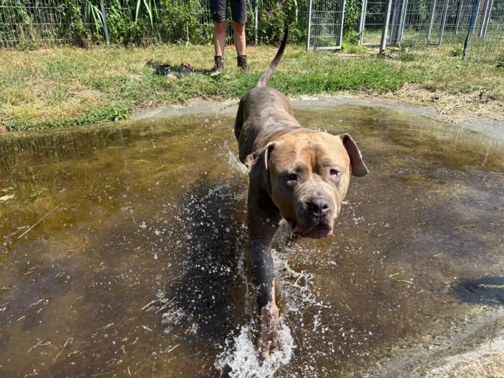 There are dogs that touch one at the first moment – not because of their stature, but because of their gaze. Our Kimba is just such a soul. With its almost 6 years, the beautiful American Bully XL female (now castrated) is actually at the best age to discover the world. But Kimbas' story is not easy. A heart of gold in a body that needs help. Kimba loves people about everything. Whether large or small, it goes open to everyone and prefers to crawl into the lap – even if it forgets that it brings 47 kg of proud to the scale. She's an absolute chick bear who doesn't want anything more than to finally get on and be loved. Honest words: Kimbas backpack is hard. We want nothing to beautify: Kimba is a victim of her race history, a so-called breeding. Her genetics have put many stones in her way. From arthrosis to rollerliders to cross-band tears and extreme loads of the elbows due to their heavy front construction – Kimba will, unfortunately, always remain a 'construction site'. What we do for them – and what their new home has to do: Currently, Kimba gets the full well-being program so that she can go through everyday life without pain: - Regular physiotherapy: So that the muscles support the joints. -High quality supplement: to keep inflammation in the body. -Medical care: We already have gait analysis and operations behind us to give their quality of life. Your perfect home: Kimba is looking for a very special nest. Since she had problems with artisans in the past and does not like cats, she is only taught as a single princess. She wants her people alone. Our prerequisites for a happy ending: Experience: You should recognize yourself with this race direction. Huge living: With 45 kg and joint problems, stairs are a taboo. Financial stability: physio and medicines will be their Le