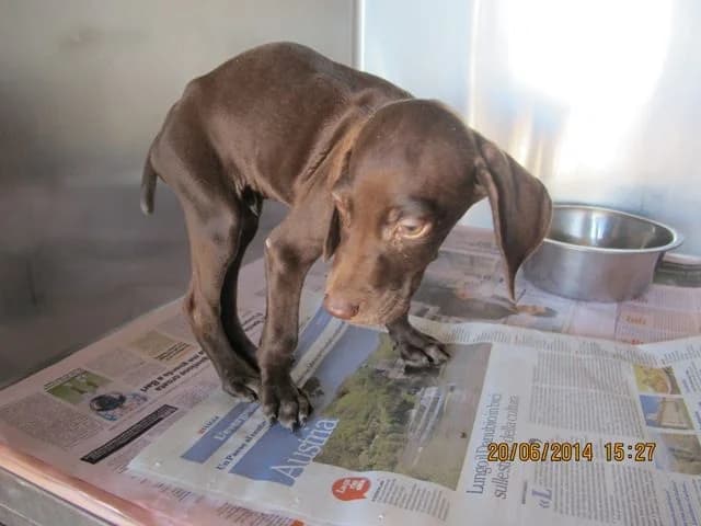 03-03-2015 - Tutte le peripezie di King forse nemmeno ve le ricordate. Ricordate quel cucciolo trovato nel cassonetto con la gobba? Le volte che è stato operato. Il bozzo, terminato il ciclo di antibiotici prontamente si ripresentava. Finalmente siamo riusciti a risolvere il mistero di King. Dopo tanto tempo e un altro intervento abbiamo rimosso il corpo estraneo che continuava ad affliggere il nostro amico.anche noi siamo rimasti stupiti quando abbiamo visto di cosa si trattava, abbiamo sempre pensato che fossero dei sequestri ossei conseguenti alle vecchie fratture vertebrali e invece si trattava di un spiga di circa 5 cm verosimilmente penetrata in profondità al momento del trauma poi isolata dall'organismo. King si è risvegliato e da subito ha mostrato sollievo. E se King non avesse incontrato noi cosi' caparbi? Ci auguriamo di aver risolto tutti i misteri di questo piccolo tesoro. Grazie a chi ci aiuterà, King è un tesoro e merita tanto.Rifiutato e buttato nel cassonetto. Questo è stato considerato King per " qualcuno". Clicca sulle foto per ingrandirle! 23-09-2014 - Ecco il piccolo King, guardate come è diventato bello e meraviglioso. Adesso per King ci vuole solo una bella casa. Non immaginate le tante spese sostenute per questa creatura, per diventare cosi' c'è stato bisogno oltre delle cure anche di tanto amore, quello cura tutte le malattie. King ha lottato tanto ma ora è un vero tesoro. Una casa per King Clicca sulle foto per ingrandirle! 25-06-2014 - Eccolo deforme, con una gobba, fa tenerezza solo a guardarlo eppure non c'è stata pietà per lui. E' stato buttato nel cassonetto della spazzatura, una persona che l'ha raccolta lo ha portato dal veterinario e da li siamo stati immediatamente chiamati. Eccolo guardatelo in che condizioni è. Lunedi faremo delle lastre per capire da cosa è causata quella gobba. E' deforme, sembra Quasimodo. Cammina malissimo.Ogni giorno per noi è un' emergenza, ogni giorno è un vita appesa ad un filo. Nemmeno il migliore equilibrista riesce a " stare in piedi" come noi!!!!!!! Sicuramente sarà stato di qualche cacciatore. Piccolo bracchetto ti abbiamo chiamato King. Ha circa tre mesi. G grazie dal profondo del cuore a chi aiuterà King. Clicca sulle foto per ingrandirle!