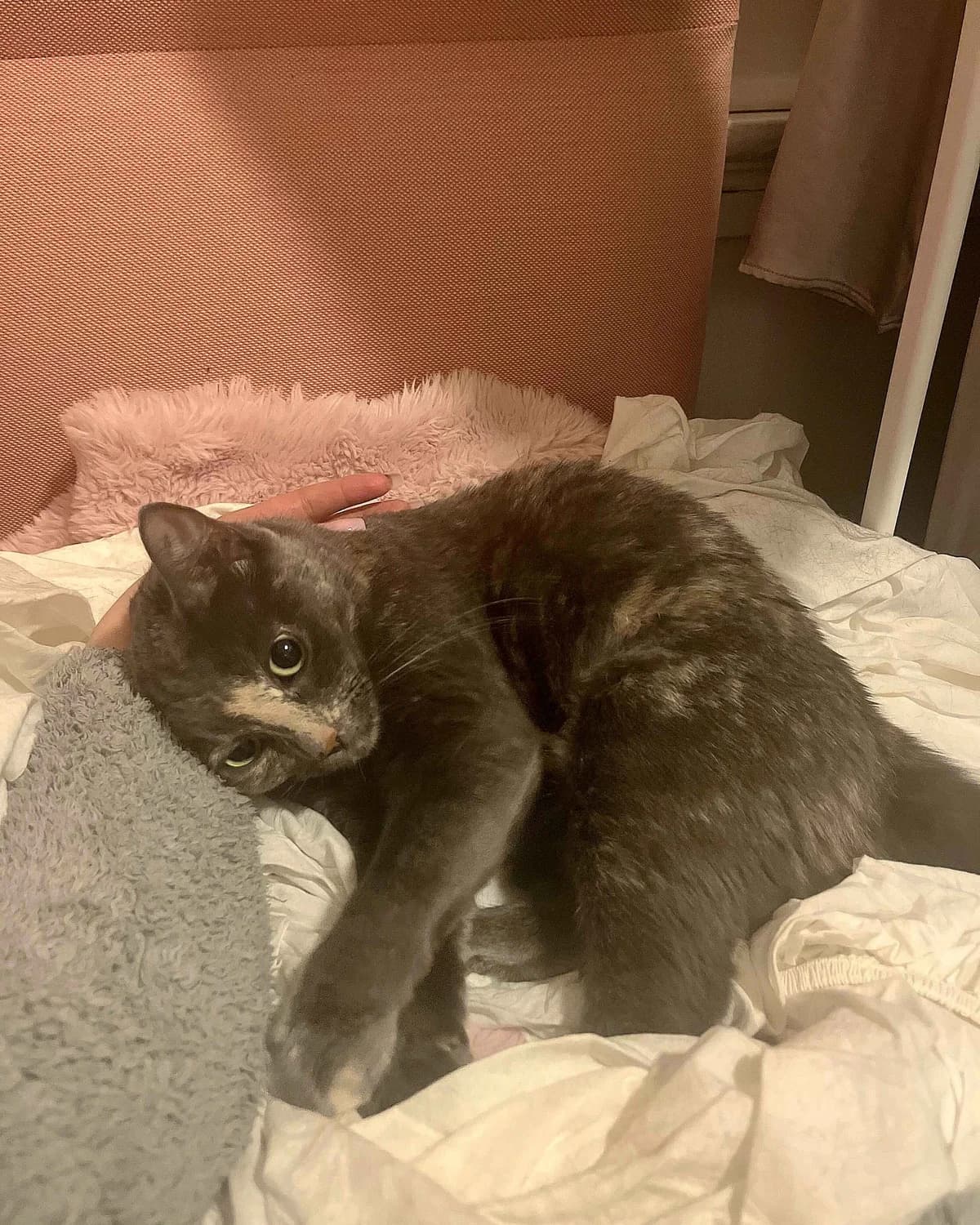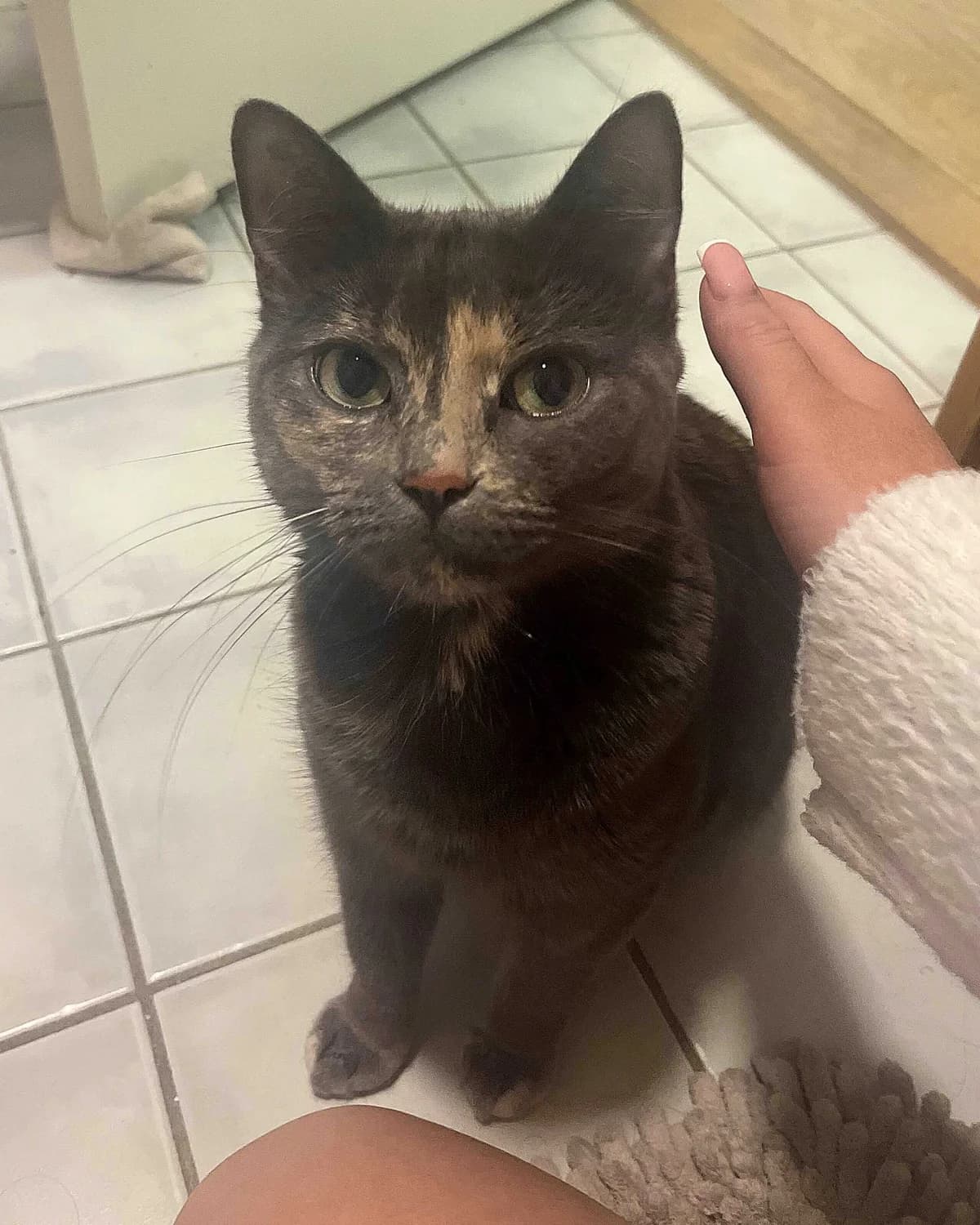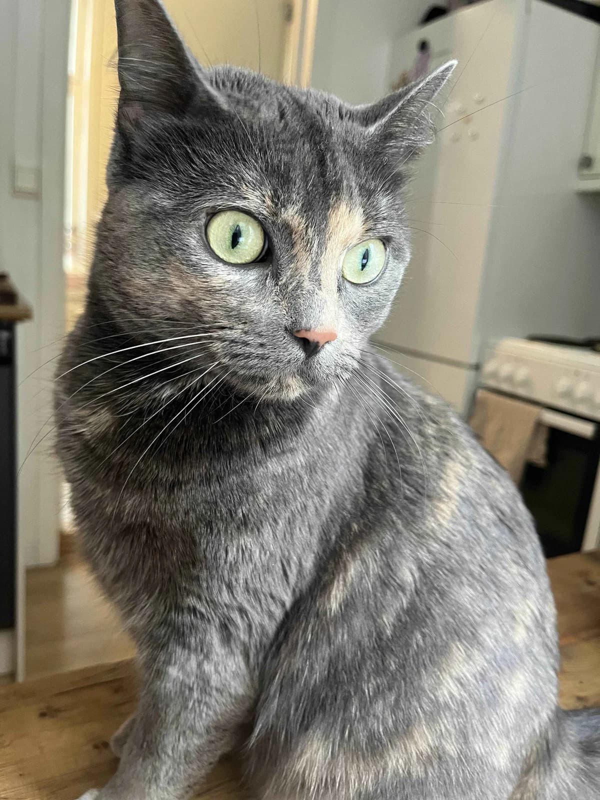 Kisha er en jentepus som elsker kos, elsker lek og som bruker mye kroppsspråk for å få frem hva hun ønsker. Kisha adopteres som utekatt og trenger tilgang på gode og trygge utemuligheter. Hun passer best i et hjem med eldre, rolige barn eller uten barn, og helst uten andre dyr slik at hun kan få all oppmerksomheten. Hei på deg. Mitt navn er Kisha, eller Ki-Ki, som jeg også blir kalt. Jeg er en kosete jentepus som elsker kos. Jeg oppsøker deg ofte for kos, men elsker også å bli oppsøkt. Selv magekos er digg, spesielt hvis du har armen din mellom beina mine så jeg kan klemme deg mens du koser meg på magen. Når jeg blir vant med menneskene mine, er det veldig lett å tyde når jeg vil ha magekos – for da legger jeg meg ned og ruller over på ryggen for å vise deg den fine, myke magen min. Jeg kan bæres litt, men er ikke veldig glad i det. For å få tiden til å gå, er jo selvfølgelig kos viktig, men jeg er også veldig leken og elsker alt som spretter. Spesielt er jo da små baller veldig gøy, men også små lekemus som jeg kan kaste litt rundt med potene mine. Har du en tunnel, er jeg også i fyr og flamme, eller hvis du har noen små og lette tepper, for da kan jeg skli på dem; det er gøy det! Slenger du med en laserprikk, er jeg i lekehimmelen! Ellers er jeg veldig glad i å se ut av vinduet, på både mennesker og dyr. Jeg er en trygg og god pus, men noen ting er fortsatt litt skummelt. Jeg bruker blant annet litt tid på å bli komfortabel rundt nye mennesker, og får du besøk, vil jeg nok trekke meg tilbake til plasser jeg føler meg trygg. Tilfluktsstedene er veldig viktige for meg, så når mennesker hilser på meg, er det fint at jeg får muligheten til å trekke meg tilbake. I fosterhjemmet er én av plassene mine under tørkestativet på badet; der er det både lunt og rolig. Jeg er også litt skeptisk for høye lyder, slik som støvsuger eller brå lyder, og jeg er ganske skvetten på alt som er nytt. Jeg har mye kroppsspråk; pelsen bølger seg over ryggen min, ørene trekkes litt bakov