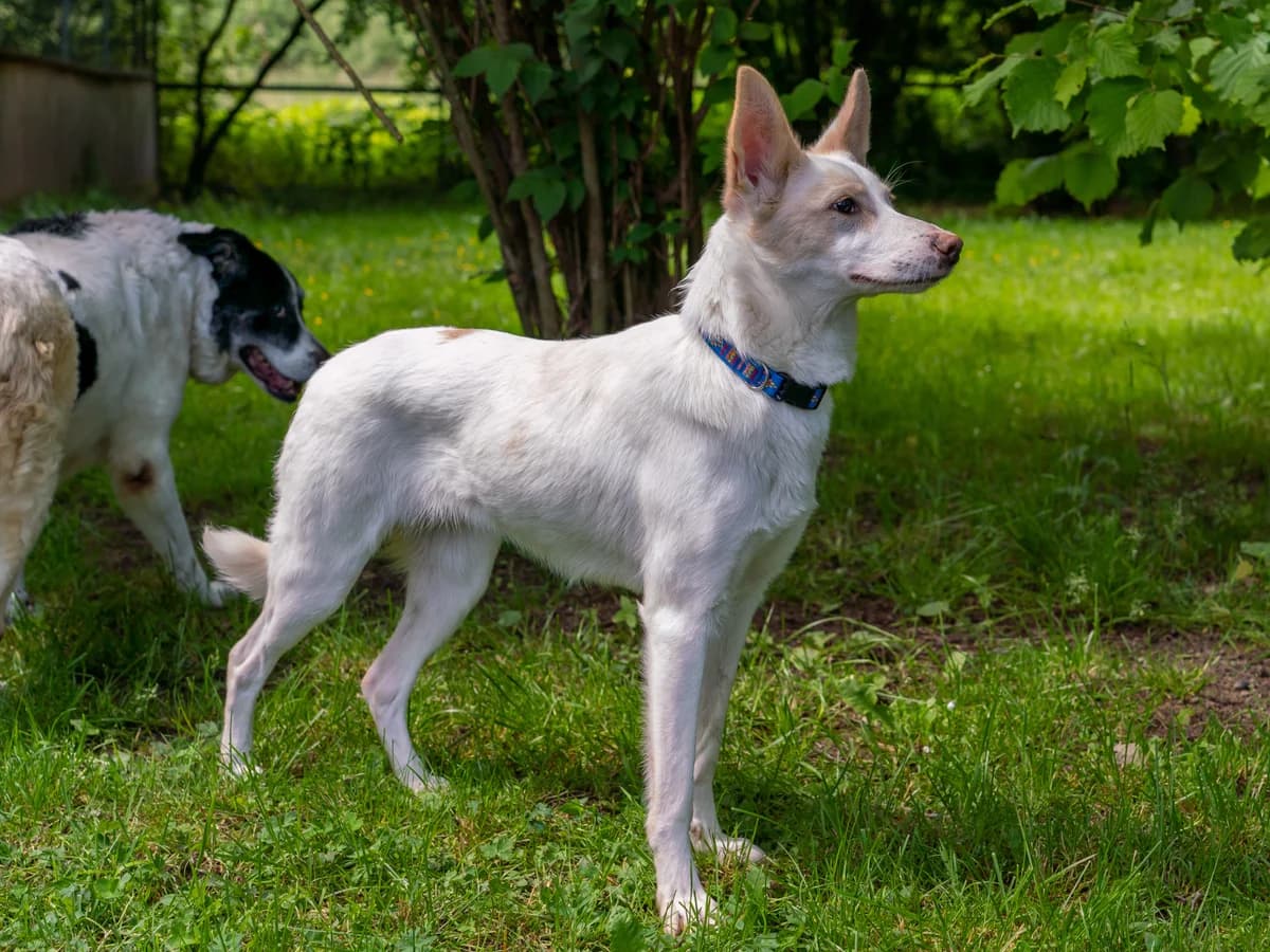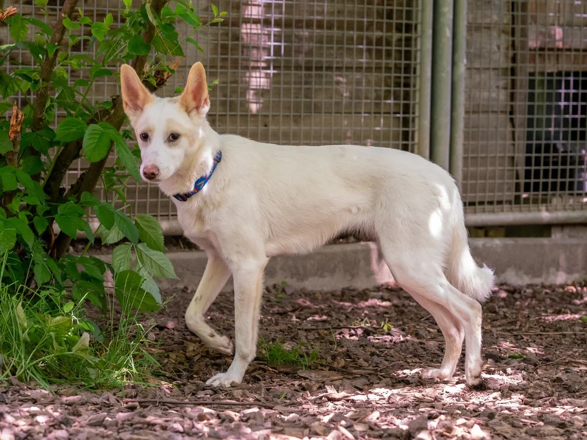 Auch Langstrumpf ist wie ihr Bruder Zefir und ihre Schwester Pippi noch auf der Suche nach ihren richtigen Menschen. Sie und ihre beiden Geschwister sind die Überlebenden aus einem 6-er Wurf. Sie wurden zurückgelassen in einem Hinterhof in Charkiv aufgefunden und in der dortigen Tierklinik aufgepäppelt. Sie litten unter anderem an Entzündungen des Magen-Darm-Traktes, weswegen Langstrumpf und auch ihre Geschwister magenschonendes Futter benötigen. Ende April 2022 durften sie mit auf den Evakuierungs-Transport nach Starnberg. Langstrumpf und ihre Schwester Pippi sind außergewöhnlich schlau, voller Energie, leichtfüßig und bewegungsfreudig. Sie ist anfangs noch etwas scheu, beobachtet und studiert das menschliche Gegenüber sehr genau. Den direkten Körperkontakt mit Menschen geht sie noch nicht ein, ist dennoch stets freundlich-interessiert und lässt sich von ihr vertrauten Personen auch anleinen. Pippi und Langstrumpf werden auch getrennt voneinander vermittelt. Da sie über Jagdtrieb verfügt, wird ein längeres und intensives Training an der Schleppleine von Nöten sein. Ihre Menschen sollten bereit sein, sich das Vertrauen von Langstrumpf zu erarbeiten. Über aktive, sportliche und engagierte Menschen mit Hundeverstand, die sie körperlich und geistig auslasten würde sich Langstrumpf sehr freuen. Langstrumpf kann bestimmt in eine Familie mit größeren, verständnisvollen Kindern ab ca 15 Jahren sowie mit anderen freundlichen Tieren vergesellschaftet werden. Ob Langstrumpf katzenverträglich ist konnte bislang noch nicht getestet werden, bei professioneller Begleitung durch einen Hundetrainer ist dies aber durchaus denkbar. Da sie in ihrem bisherigen Leben noch nicht viel kennen gelernt hat wird der Besuch einer Hundeschule/Hundetrainers dringend empfohlen. Langstrumpfs Vorleben war geprägt vom Thema Überleben und keiner Zeit für das Hunde 1 x 1. Das sollte sie nun nachholen dürfen bei geduldigen, freundlich-kundigen Händen, die fördern und fordern, auslasten und Grenzen setz