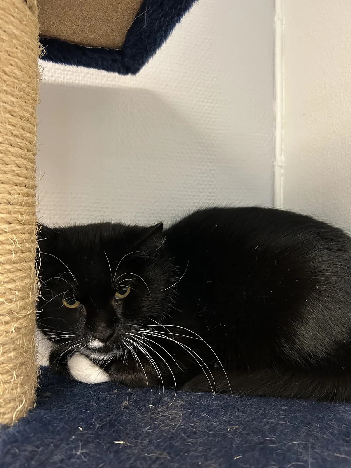 Innan Lark kom till oss matades hon på en gård tillsammans med några andra katter sen en tid tillbaka. Vi tror inte att hon har haft mycket mänsklig kontakt innan och det tar därför ett tag för henne att lite på en. I jourhemmet har hon gjort framsteg och vågar vara framme och går med på lite gos då och då. Med rätt tid och tålamod tror vi att hon kan bli en trygg kisse. Lark har fungerat bra som innekatt i sitt jourhem men hon skulle även uppskatta en trygg och säker utevistelse på landet, när hon blivit tillräckligt trygg. Vi tror att Lark vill ha en kattkompis i sitt liv, hon vill därför flytta tillsamman med en kompis från katthemmet eller till ett hem där det redan finns en katt. Lark vill bo i ett lugnt hem utan barn och utan hundar. Inkom i jourhem 2/12 2025