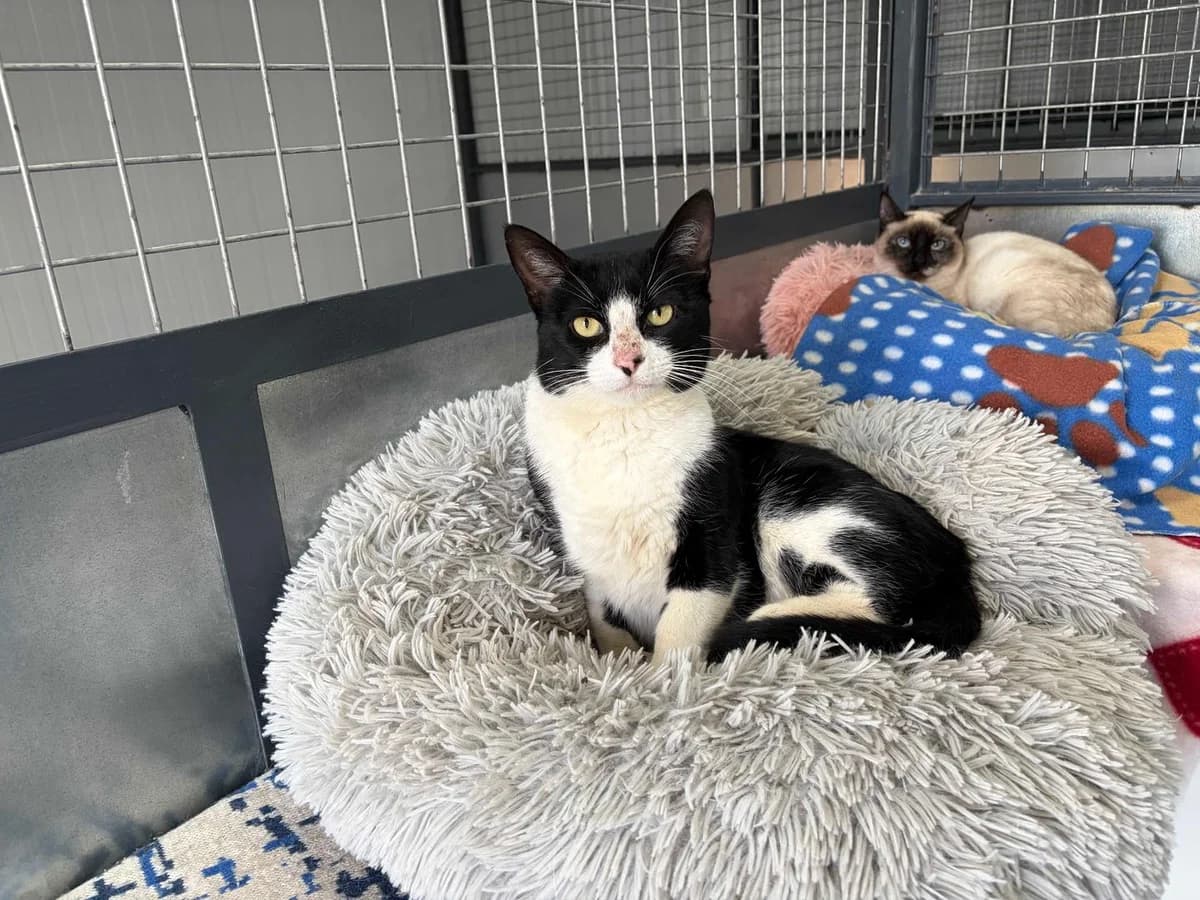 Laslo is a beautiful black and white cat found by Health Services in Río Real area after seeking shelter in a neighbor's house. With no microchip or owner searching, he joined Triple A shelter. He's very affectionate, calm, and loves human company, following people around and seeking cuddles. Friendly, trusting, and grateful for attention, he gets along well with other cats. Having experienced abandonment, Laslo deserves a loving family to provide the stability and home he seeks.