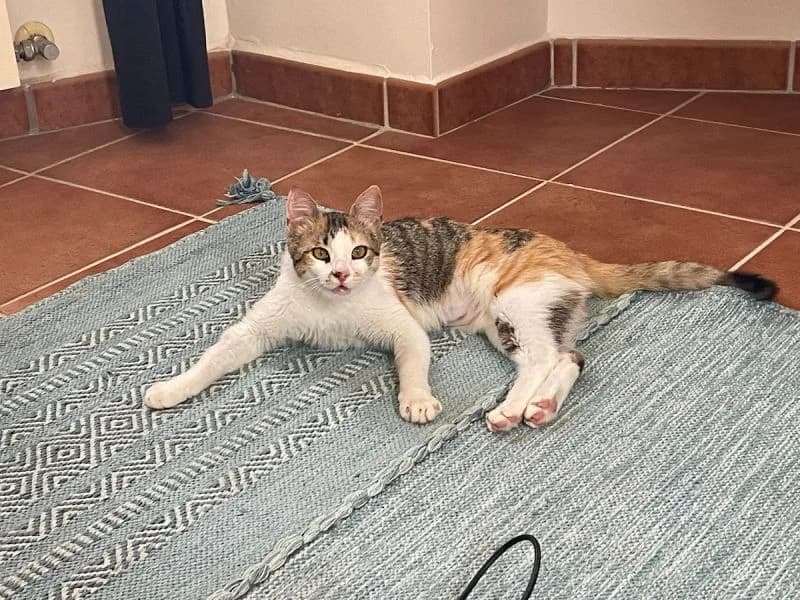 Lea was born about in May 2023. The beautiful tricolor cat girl Lea appeared one day at a country house and stayed. Since the owners could not take care of Lea properly, they brought it to the collecting station. Lea is very temperamental and stormy, has an incredible self-confidence and looks like she is washed with all the water. She loves strings and is very dedicated to man. Certainly, she would be happy with gentle children's hands. Lea has a blind eye, as an injury has not been treated in time. This does not impede them at all in everyday life. Now Lea wants a home to a Gspändli with a large, connected balcony or terrace. Maybe Lea's lucky, and he's lucky to be in her home together with another cat-gspändli. Lea is neutered, tested, chipped and vaccinated and is transmitted with the animal protection certificate.