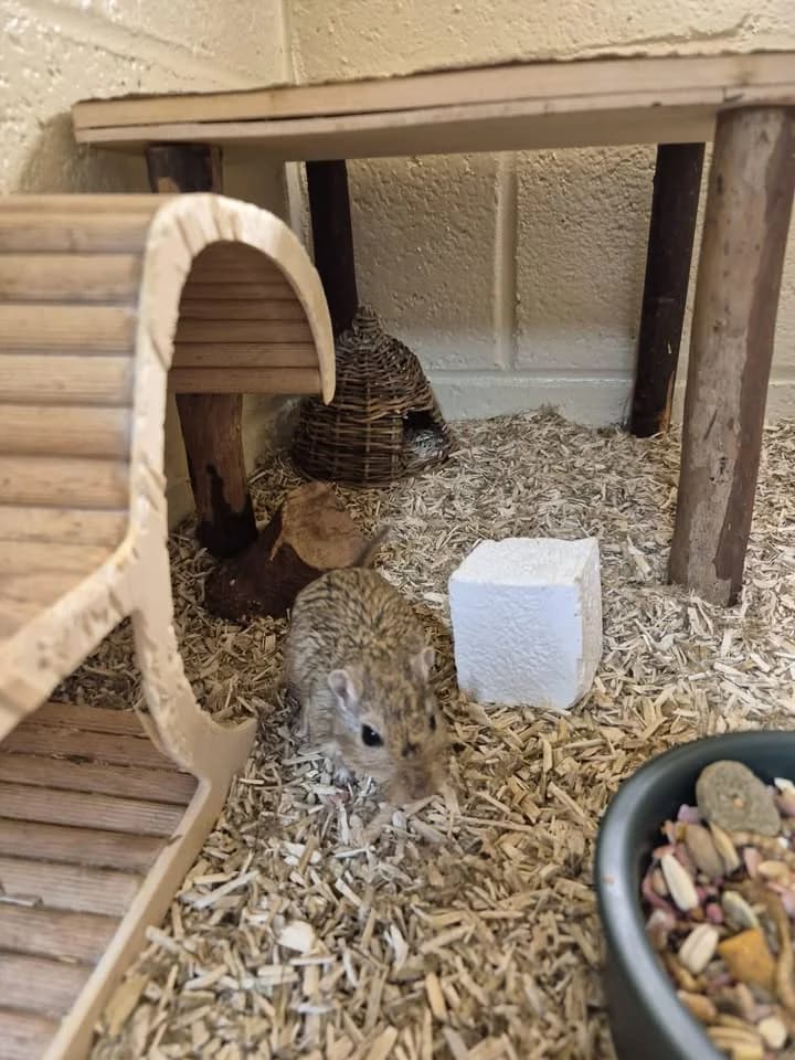 Voici trois adorables gerbilles âgées d’un an et habituées à vivre ensemble. Il s’agit d’une adoption en trio. Les gerbilles sont des animaux actifs qui ont besoin : d’un habitat spacieux, avec une bonne profondeur de litière pour creuser de stimulation quotidienne (tunnels, cachettes, objets à ronger) d’un environnement calme et sécurisé Même si elles sont déjà curieuses, il faudra leur laisser le temps de s’adapter à leur nouvel environnement. Avec du temps et de la patience, elles pourront s’épanouir pleinement.