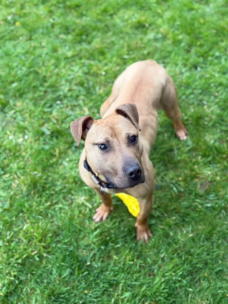 Lottie is a gentle, loving young dog who is ready to find a patient and understanding home where she can truly flourish.She may be a little worried when faced with new people or unfamiliar situations, and the scars of her past mean she will need time to learn that the world can be a safe and happy place. With kindness, patience, and plenty of reassurance, Lottie will slowly build her confidence and begin to shine.Lottie takes great comfort from the company of other dogs and could really benefit from living with a calm, gentle canine companion who can help guide her and show her the ropes. Once she feels safe, her affectionate nature comes to the forefront. She absolutely adores love and cuddles and will form a wonderfully close bond with her new family.Because she can find change overwhelming, Lottie would thrive in a home where someone is around for much of the day, especially while she settles in. She would be best suited to a household with older, dog-savvy children, or an adult-only home, where her need for space and understanding will be respected.Lottie is still young and full of energy, so she will enjoy plenty of walks, playtime, and mental enrichment to keep her happy, engaged, and thriving. With patience, kindness, and perhaps a little cheese along the way, Lottie will reward her new family with endless love, loyalty, and companionship.She is a truly special girl who simply needs someone willing to give her the chance she deserves.